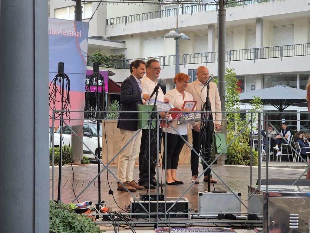 V petek smo se zgodaj zjutraj odpravili proti Beneški laguni in si ob prihodu najprej ogledali Benetke. Po nastanitvi v hotelu smo na hotelski terasi opravili še zadnjo vajo in se pripravili na popoldanski nastop. Festival se je uradno začel na trgu v središču Jesola z otvoritveno slovesnostjo, na kateri so vseh trideset sodelujočih skupin pozdravili predsednik Festivalov IN, gospod Aleš Breznikar, direktor partnerske agencije Belmondo, gospod Luca Liviero, ter generalni konzul Republike Slovenije v Trstu, gospod Gregor Šuc.