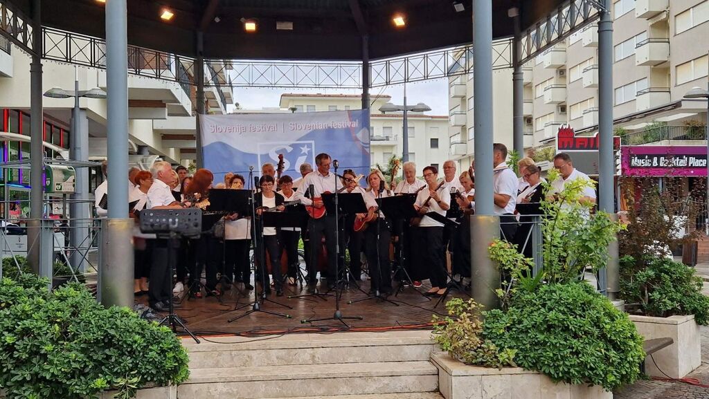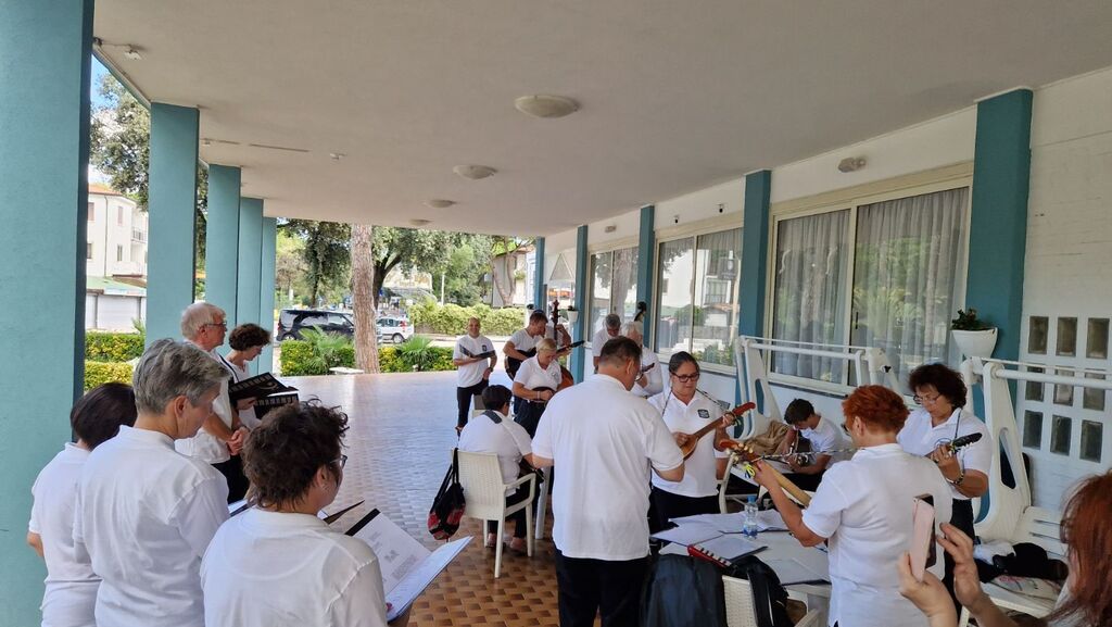 Sobotni večer smo preživeli v sproščenem vzdušju na hotelski terasi, kjer smo skupaj s tamburaši iz Kranja in plesno skupino Migaj Migaj iz Loške doline prepevali, igrali in se družili.