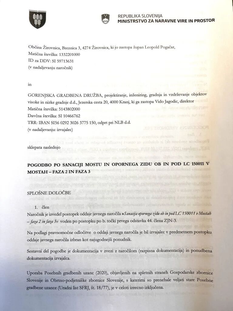 Župan Leopold Pogačar in direktor Gorenjske gradbene družbe d. d. Kranj Vido jagodic sta 12. 8. 2025 na Občini Žirovnica podpisala pogodbo o sanaciji opornega zidu in ceste v Mostah (odprava posledic po UJMI). Pri tem se prestavijo tudi obstoječi komunalni vodi in zgradi meteorna kanalizacija. Vrednost del znaša skoraj 1,5 mio eur.