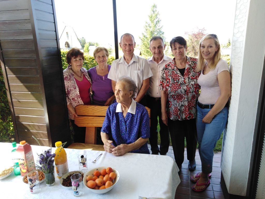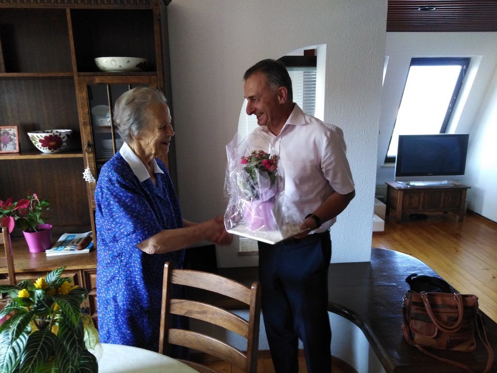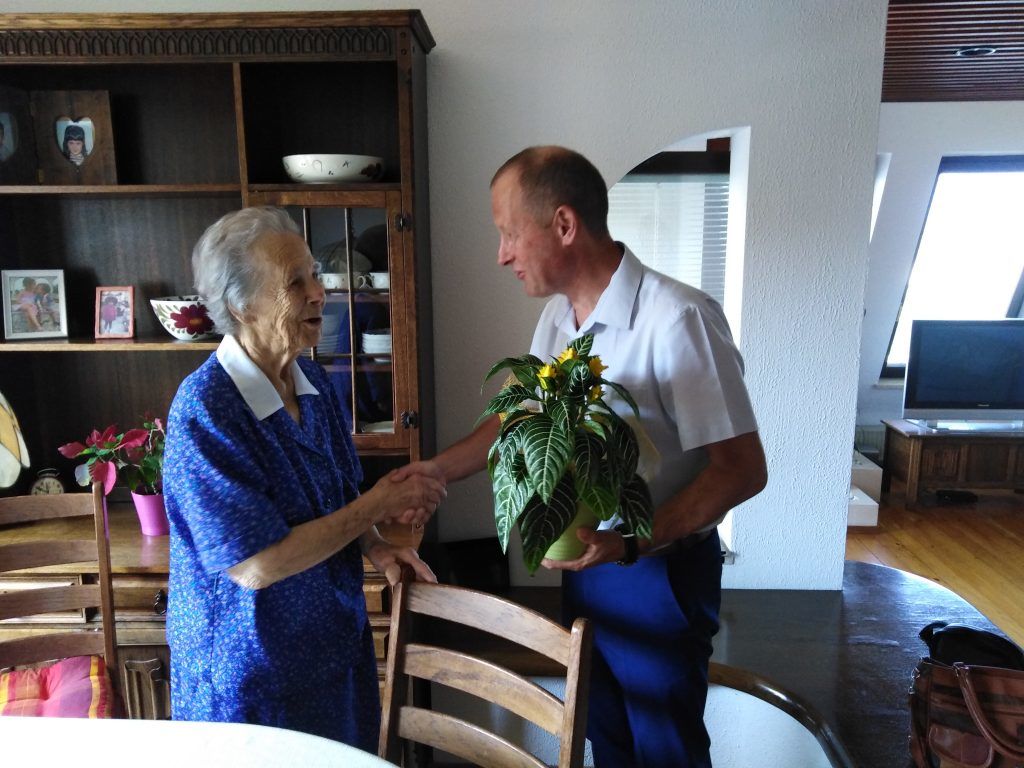 Na lep poletni dan, nas je čakala zelo prijetna dolžnost. Obiskali smo našo občanko Vido Jurman iz Rodin, ki je 22. junija praznovala svoj 96. rojstni dan. Kot je že v navadi, smo z županom Leopoldom Pogačarjem, predsednikom Društva upokojencev Žirovnica Zdravkom Malnarjem in zaupnico za starejše Tatjano Zuljan imeli to čast, da smo gospo lahko obiskali na domu, kjer živi pri vnukinji Kseniji. Vedno nam izrečeta dobrodošlico in pripravita prijeten sprejem. Sledile so čestitke ob njenem osebnem prazniku in izrečene želje po trdnem zdravju.