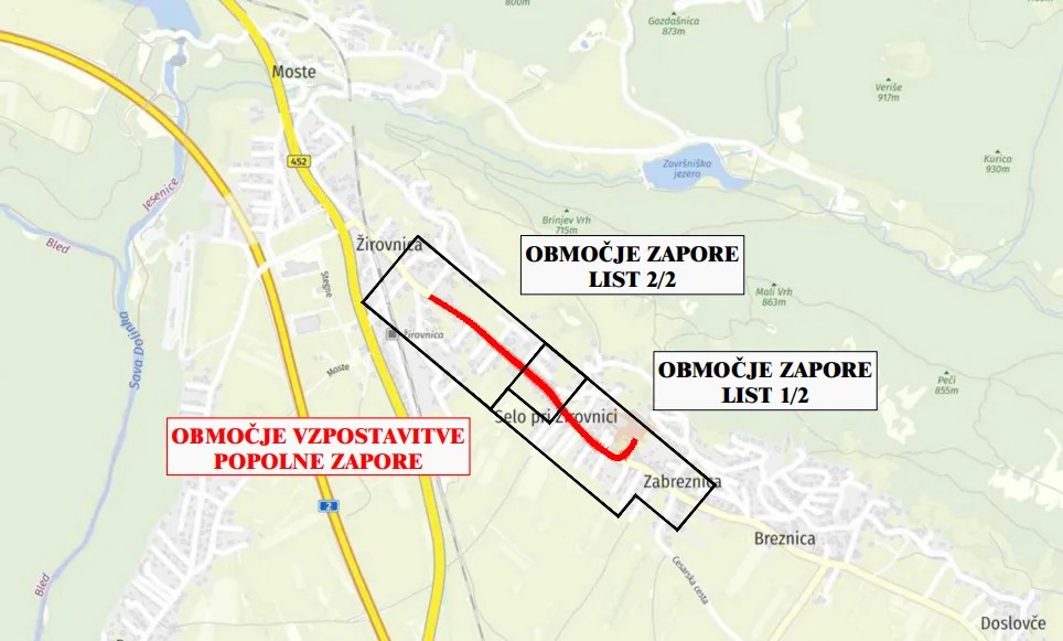 Prav tako bo na razdalji od Osnovne šole Žirovnica do bara Ajdna kratkotrajno zaprta državna regionalna cesta ter vsi njeni priključki in dovozi.