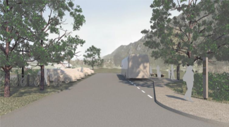 Območje parkirišča bo opremljeno z dvema lesenima klopcama, s sistemom stojala za 10 koles, pitnikom, info tablo, stebričkom za usmerjanje obiska, z večnamensko nadstrešnico, javnim dehidracijskim wc-jem, s sistemom lesenega koša za ločevanje odpadkov in leseno varovalno ograjo. Parkirišče bo nadalje opremljeno tudi s senzorskim števcem obiskovalcev in digitalno panoramsko kamero. Vsa opremljenost z urbano opremo bo skladna s Katalogom ulične opreme in pohištva Občine Žirovnica.