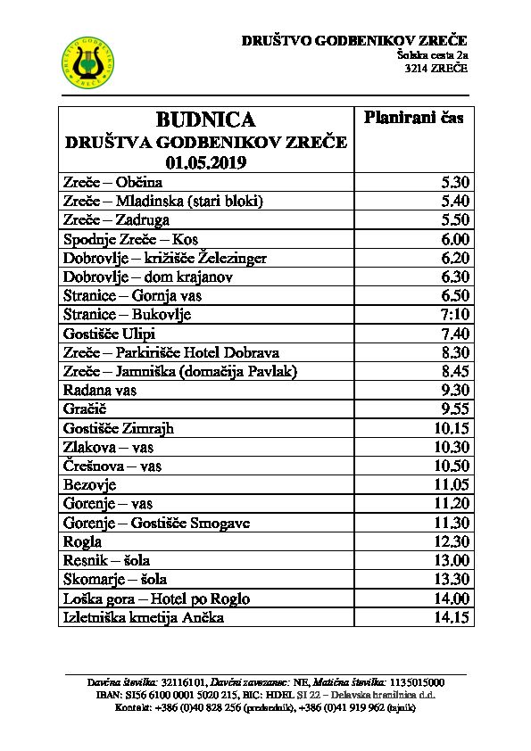 BUDNICA DRUŠTVA GODBENIKOV ZREČE 01.05.2019