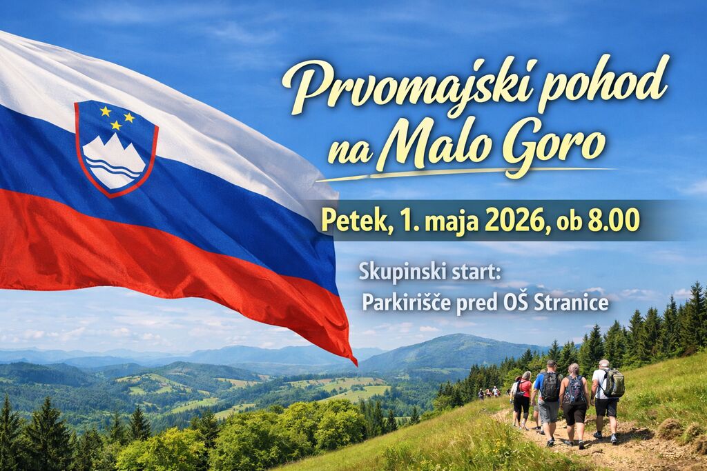 Turistično olepševalno društvo Stranice in Društvo upokojencev Stranice vabita vse krajane, pohodnike in ljubitelje narave, da se jim pridružijo na Prvomajskem pohodu na Malo Goro, ki bo v petek, 1. maja 2026, ob 8.00.