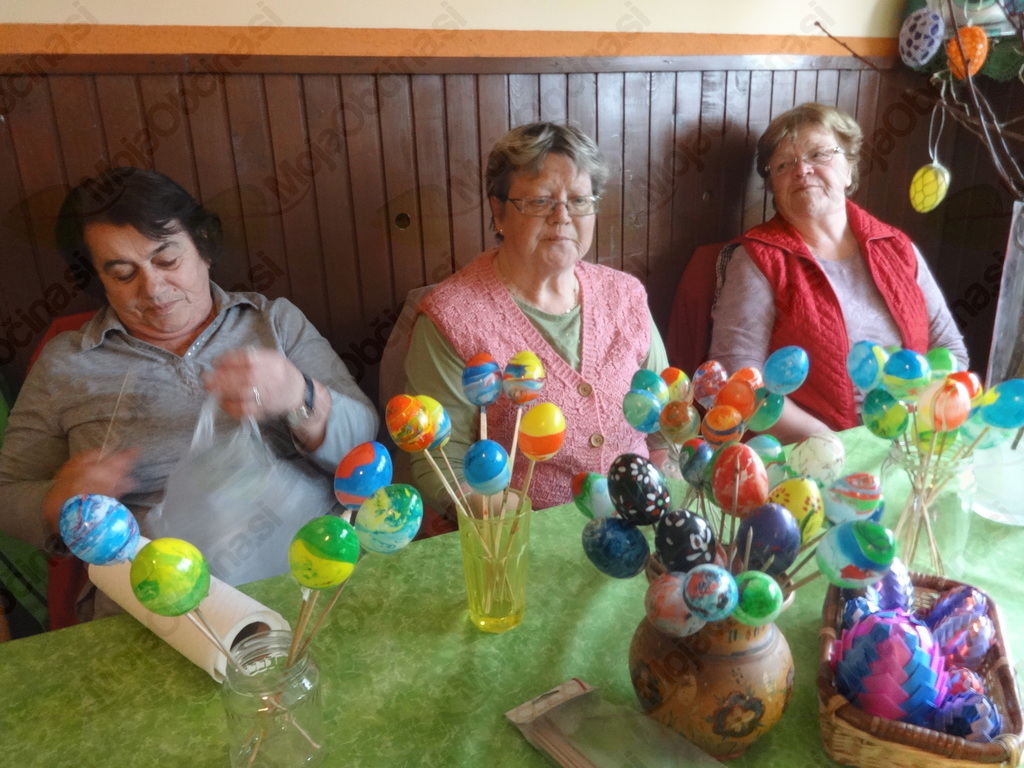Nekaj članov Območnega društva invalidov Dravinjske doline se je v četrtek, 24.3., zbralo pri Silvi Pivec v Žičah na delavnici barvanja pirhov. Barvali so v tehniki marmoriranja . Plastična jajčka so nataknili na špilo in jih pomočili v posodo z dvema različnima barvama ter jih zavrteli. Tako so nastali zanimivi vzorci na jajcu. Ob klepetu je bilo delo hitro opravljeno. Gospodinja jih je na koncu tudi obilno pogostila z raznimi dobrotami. Obarvana jajca pa so odnesli s sabo domov in z njimi polepšali svoje namizne velikonočne dekoracije.