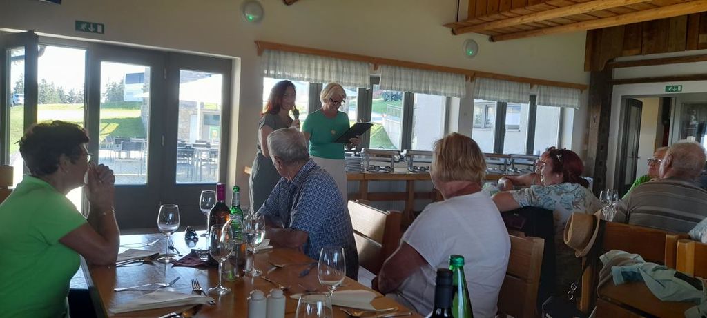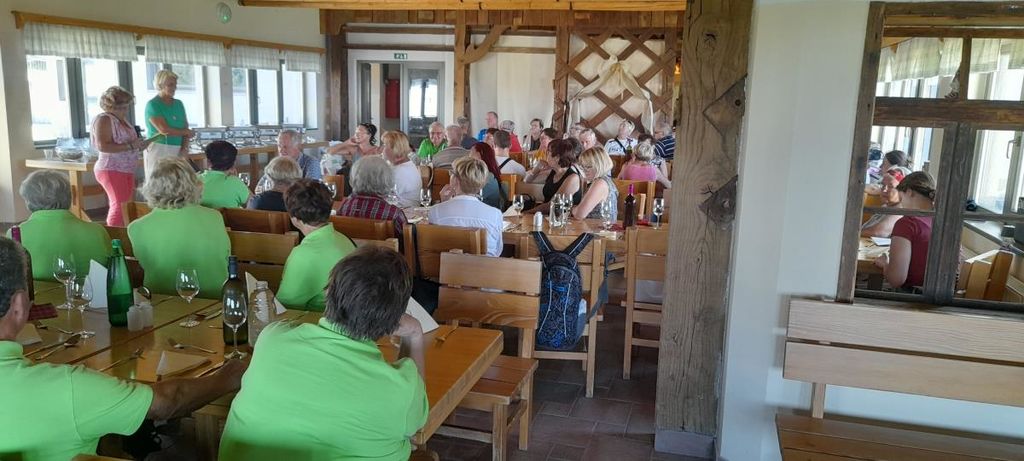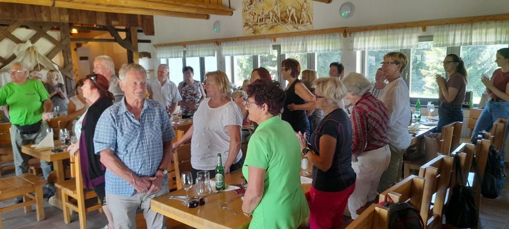 Sledilo je kosilo v Koči na Jurgovem na Rogli, kjer so nas pričakali z odlično hrano. Predsednica društva, Julija Mauher, je na kratko pozdravila vse prisotne, še posebej predstavnike Zeliščarskega društva Srčna moč iz Lovrenca na Pohorju. Povzela je zgodovino in dosežke društva ter pozvala vidnejše aktivne člane k predstavitvi svojih funkcij. Le ti so v nadaljevanju predstavili svoje delo in prispevek k društvu, delili svoje izkušnje in zgodbe o svojem zeliščarskem delovanju v vseh desetih letih. Njihove zgodbe so poudarile, kako pomembno vlogo ima društvo pri izobraževanju in ozaveščanju ljudi o zeliščarstvu ter ohranjanju narave.