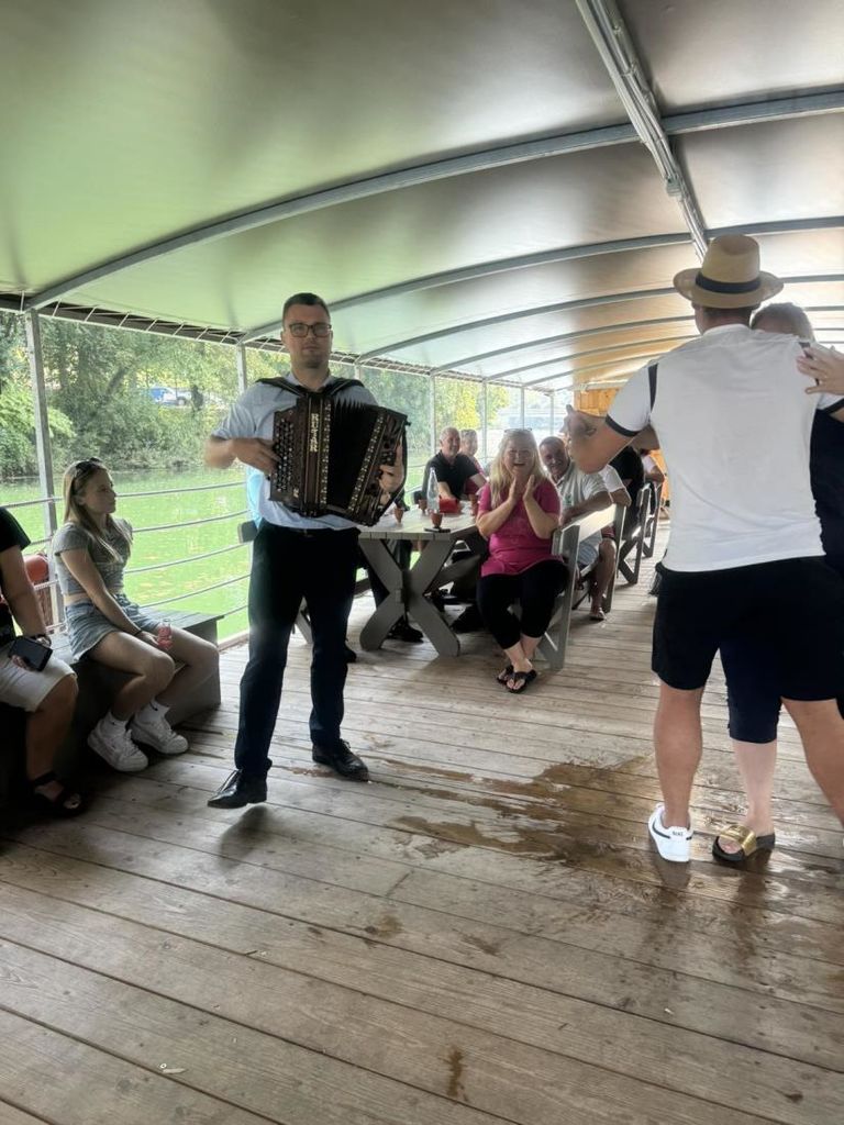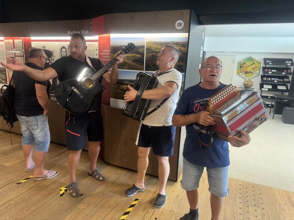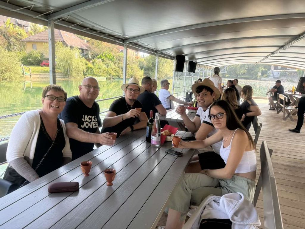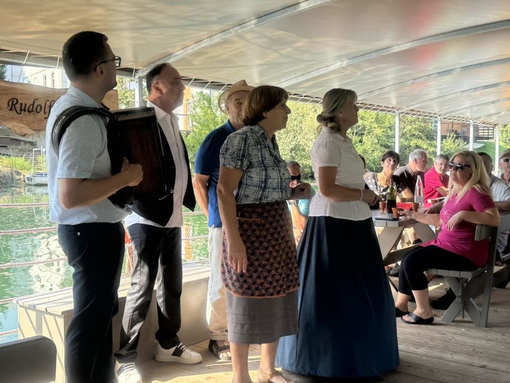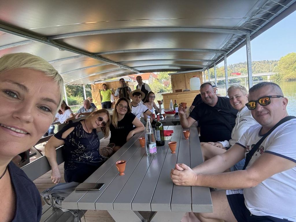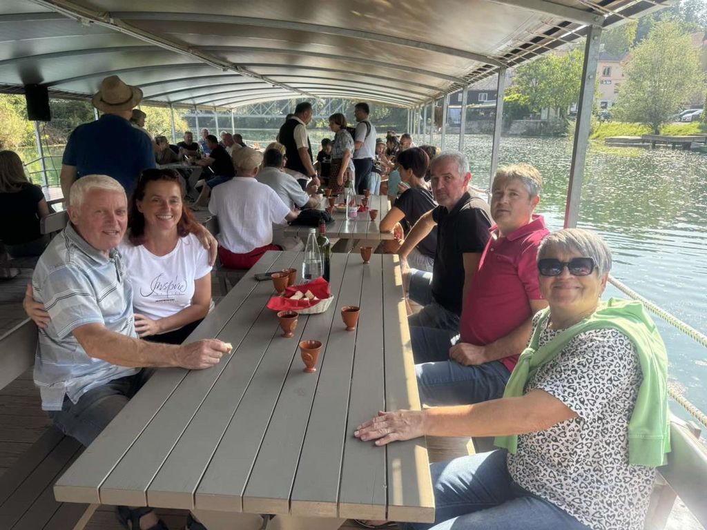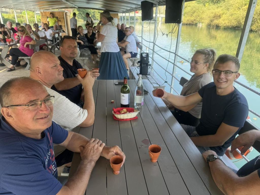Članice in člani vinogradniškega društva in ljubitelji vin Zreče so se v soboto podali na skupni izlet in odkrivali lepote Bele krajine. Zgodaj zjutraj je sledila vožnja proti prestolnici Dolenjske, v Novo Mesto. Sprehodili so se do obrežja reke Krke, kjer jih je pričakal harmonikaš in kapitan Rudolfovega splava. Sledila je plovba po smaragdno zeleni lepoti, reki Krki. Peljali so se pod štirimi mostovi, mimo gradu Kamen in Novi dvor, v katerem je danes bolnica ter videli cerkev sv. Nikolaja, ki dominira na vrhu griča. Med vožnjo so lahko očudovali najlepšo mestno veduto, novomeški Breg, ki je nekoč privabil nešteto slikarjev, frančiškansko cerkev in samostan. Med samo plovbo jih je obiskala perica, Primiceva Julija, ki jim je predstavila mesto na prav poseben način. Ob prepovedovanju so zraven peli in zaplesali v ritmu harmonikarja, ter okušali cviček in dolenjsko pogačo. Za konec so iz svoje sredine izbrali udeleženca in ga »krstili«. Tako je društvo pridobilo novega splavarja Urha Iršič, ki je nalogo opravil odlično. Nasmejani in dobre volje so se vrnili nazaj v pristan in se od tam odpravili v Mirno Peč. Tam so obiskali muzej Lojzeta Slaka in si ogledali prav posebno in zanimivo razstavo o virtuozu Lojzetu Slaku, ki je bil virtuoz na dinamični harmoniki, ambasador cvička in vrhunski glasbenik. Ogledali so si kratek film o njegovem življenju, družini in delu, ter se seznanili z njegovimi največjimi poslovnimi uspehi v življenju. Na posebnem odru so člani društva ob harmoniki skupaj zaigrali njegovo najljubšo skladbo in celo posneli svoj video spot, ki je sedaj na voljo tudi na YouTubu!