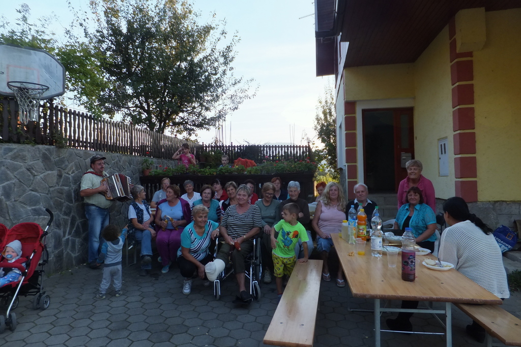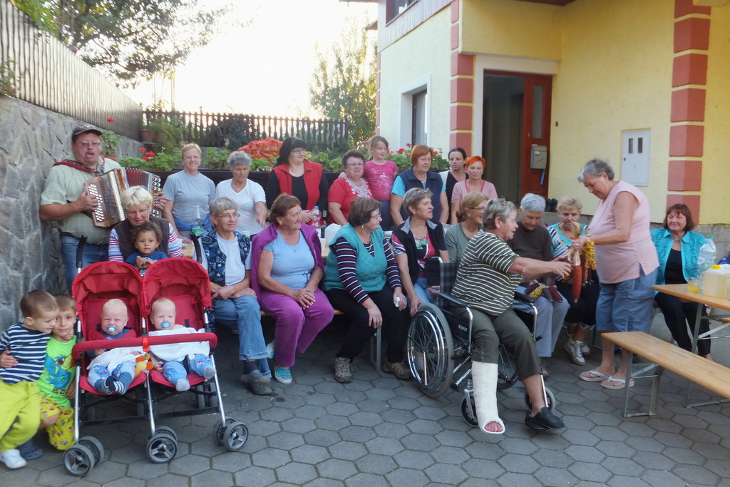 Z Martino Kapun sva jih presenetili - ravno so bile pri malici. Bilo je zelo zabavno. Harmonikar je tako vse skupaj popestril z glasbo poskočnih viž. Je pa ta dan sovpadel natanko pet let po odhodu Lojzeta Slaka. Dekleta so zapela, pa tudi mlajše so jim pomagale. Otrokom je bila zabave zelo všeč. Nekaj čez osemdeset članic prihaja ravno iz Oplotnice! Nastalo je tudi nekaj fotografij. Kmalu zatem je po Marijo prišel njen mož, ki je sicer Nemec in pravi da imata zaradi te poškodbe zdaj kup problemov. Se bo že uredilo. Marija je dobrovoljček, pridna, delovna in ne bo dopustila, da ji poškodba pokvari vse tisto kar ima najraje in to je svoj drugi dom, kjer se veliko druži z vaščani.