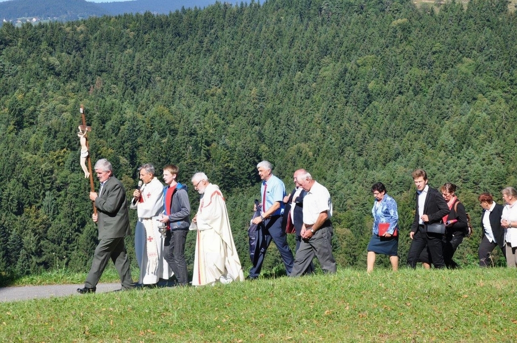 Zreški župnik Peter Leskovar je blagoslovil cesto, po kateri so se nato podali vsi zbrani in šli ob molitvi v procesiji peš do cerkve. Sledila je sveta maša, ki jo je ob somaševanju daroval Gusti Raščan, ki je zdaj v Slovenj Gradcu in v navdušujoči pridigi poudaril, da se je potrebno prizadevati na mir na svetu.