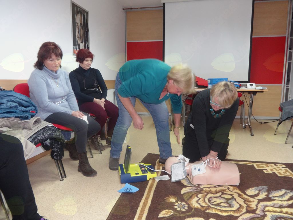 Člani Območnega društva invalidov Dravinjske doline Slov. konjice (ODIDD) so 9.2.2018, v prostorih RK, prisluhnili predavanju Oživljanje z avtomatskim elektro defibrilatorjem (AED). Vsako leto, dvakrat pripravijo omenjeno predavanje s praktičnim izvajanjem. Marija Medven je seznanila enajst prisotnih članov s temeljnimi postopki oživljanja. Z zanimanjem so spremljali demonstracijo. Seznanila jih je tudi z nahajališči AED v občini Slov. Konjice. AED nam pomaga in daje navodila pri oživljanju osebe. Poslušalci so poskusili s postopkom oživljanja. Nikoli ne veš, kdaj bo potrebno uporabiti omenjeno znanje v resnični situaciji in s tem rešiti življenje. ODI DD se zahvaljuje za posredovanje znanja.