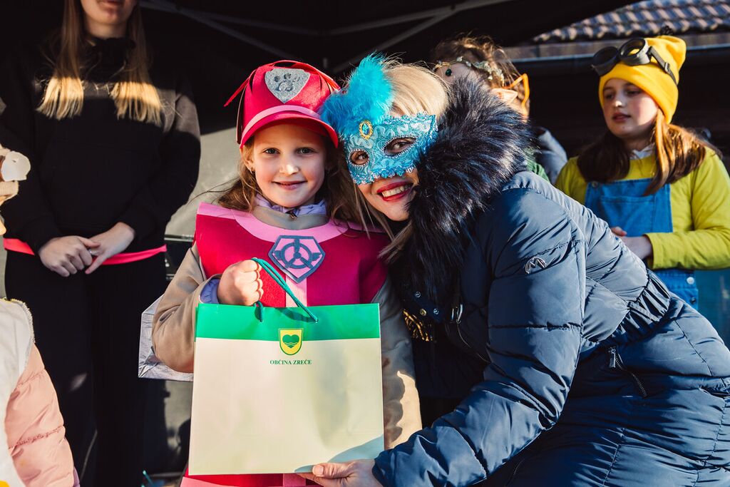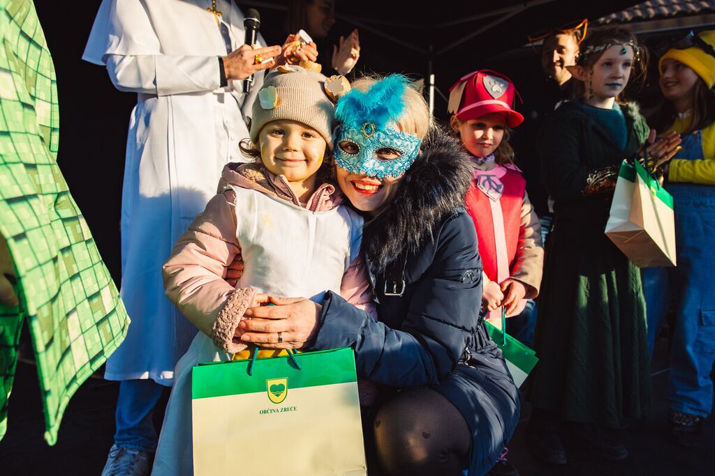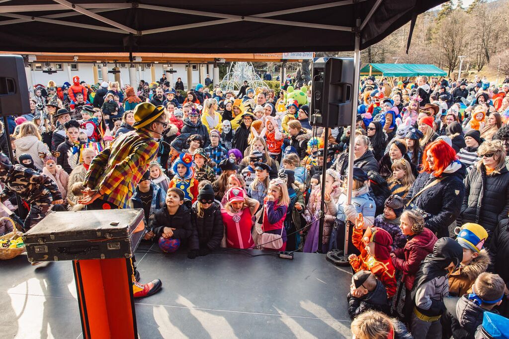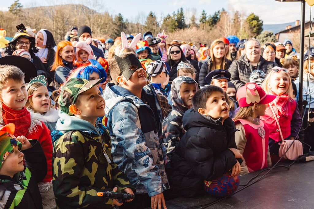 V spremstvu Zreške godbe se je pisana pustna povorka podala skozi Zreče in s svojo energijo razveselila vse obiskovalce. Rajanje se je nato nadaljevalo na ploščadi pred Termami Zreče, kjer je otroke navdušil klovn Jaka z zabavno in interaktivno predstavo. Smeh in dobra volja sta napolnila prizorišče, najmlajši pa so uživali v igrah, plesu in sladkem presenečenju – brezplačnem krofu za vsako masko.
