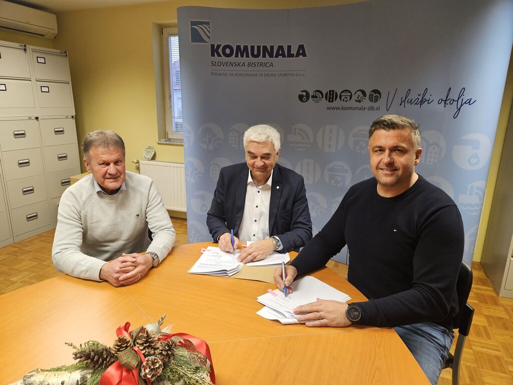 Župan Občine Zreče mag. Boris Podvršnik in direktor Komunale Slovenska Bistrica Maksimiljan Tramšek sta v sredo, 24. decembra 2025, podpisala Pogodbo o poslovnem najemu javne infrastrukture ter Pogodbo o izvajanju obračuna gospodarske javne službe odvajanja in čiščenja komunalne in padavinske odpadne vode ter okoljske dajatve.