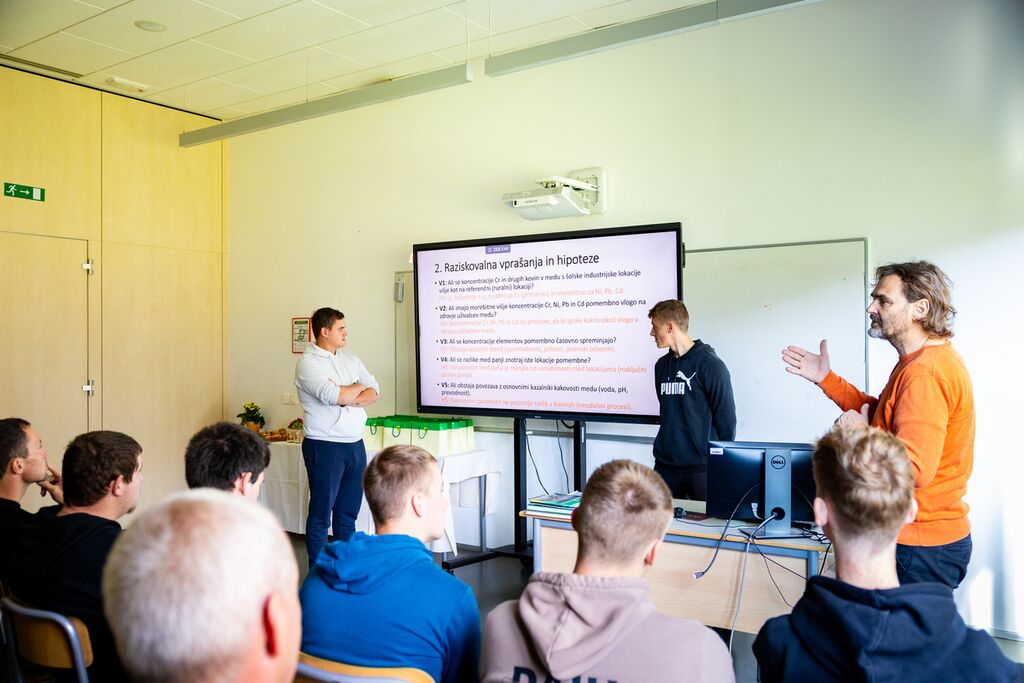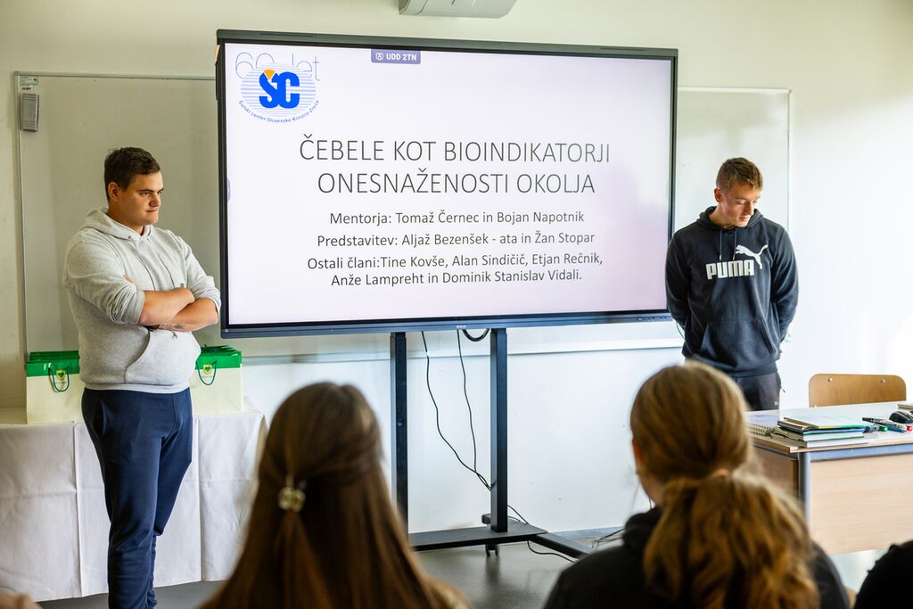 Dijaki so pod mentorstvom Tomaža Černeca in Bojana Napotnika pripravili raziskovalno nalogo z naslovom "Med kot bioindikator onesnaženosti okolja".