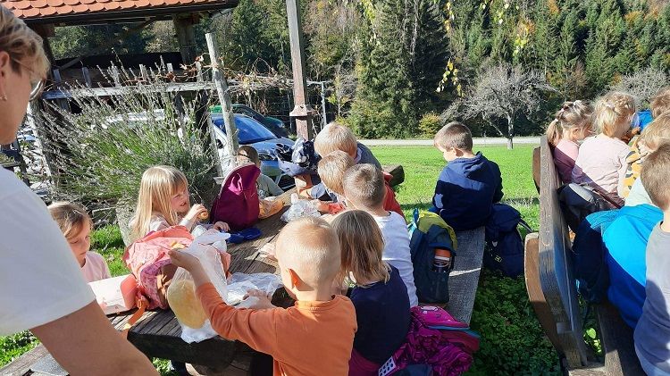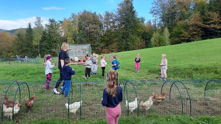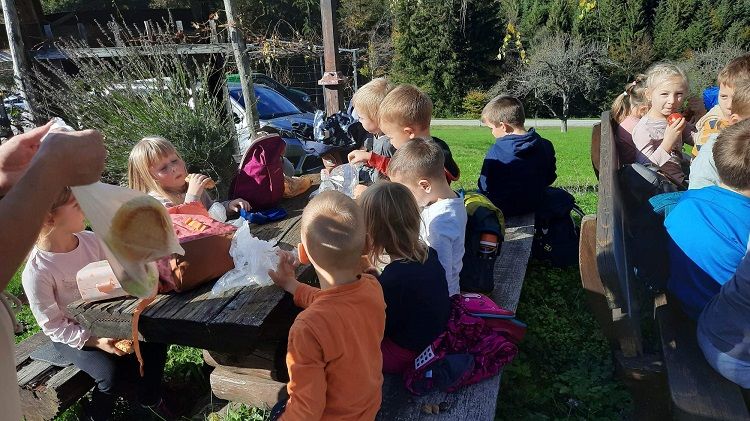 Na prvi pohod smo se odpravili tudi Cici planinci iz enote Zreče. Iz vrtca smo krenili mimo jezera in se usmerili po Srčkovi učni poti do Turistične kmetije Ančka, kjer smo se okrepčali z zasluženo malico iz nahrbtnika. Med postankom smo nakrmili kokoši ter odkrili sladko presenečenje, ki nam ga je nastavil škrat. Vračali smo se po cesti do ovinka, kjer smo zavili v gozd, prečkali travnik in pot nadaljevali ob drevesnici na Zg. Dobravo pri blokih. Od tam pa po stranskih poteh mimo vil in nazaj v vrtec, kjer so nas že čakali starši. Na koncu smo vsi prijetno utrujeni odšli domov.