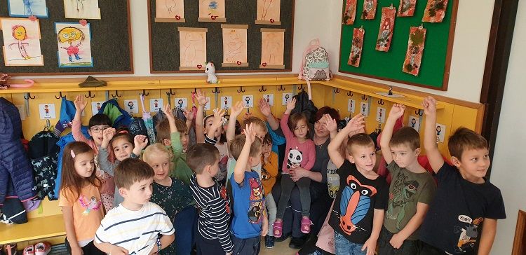 Otroci in strokovne delavke vrtca Gorenje