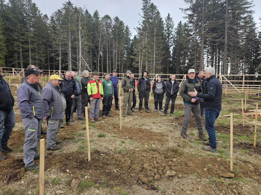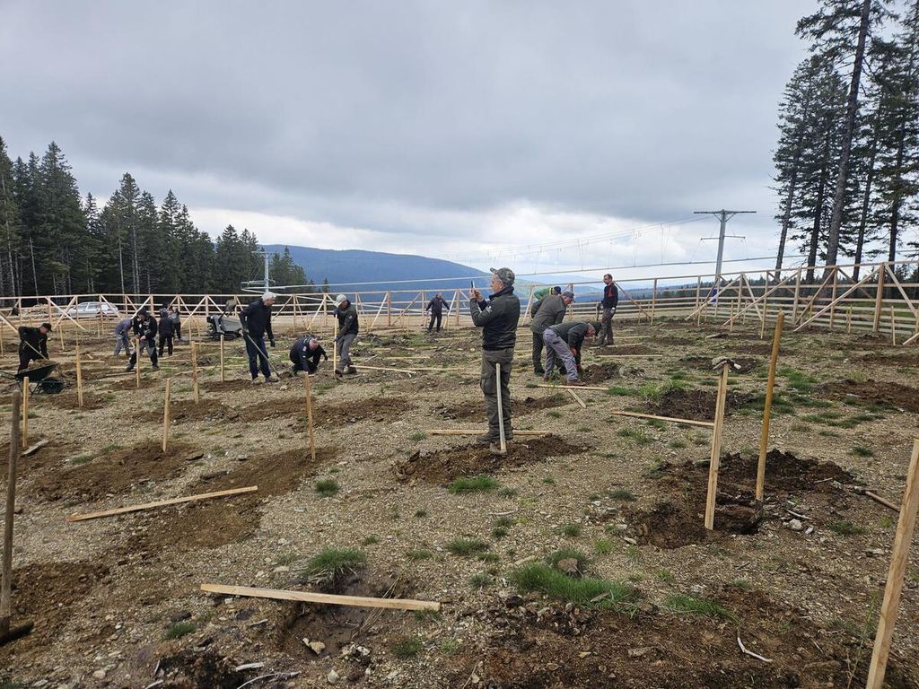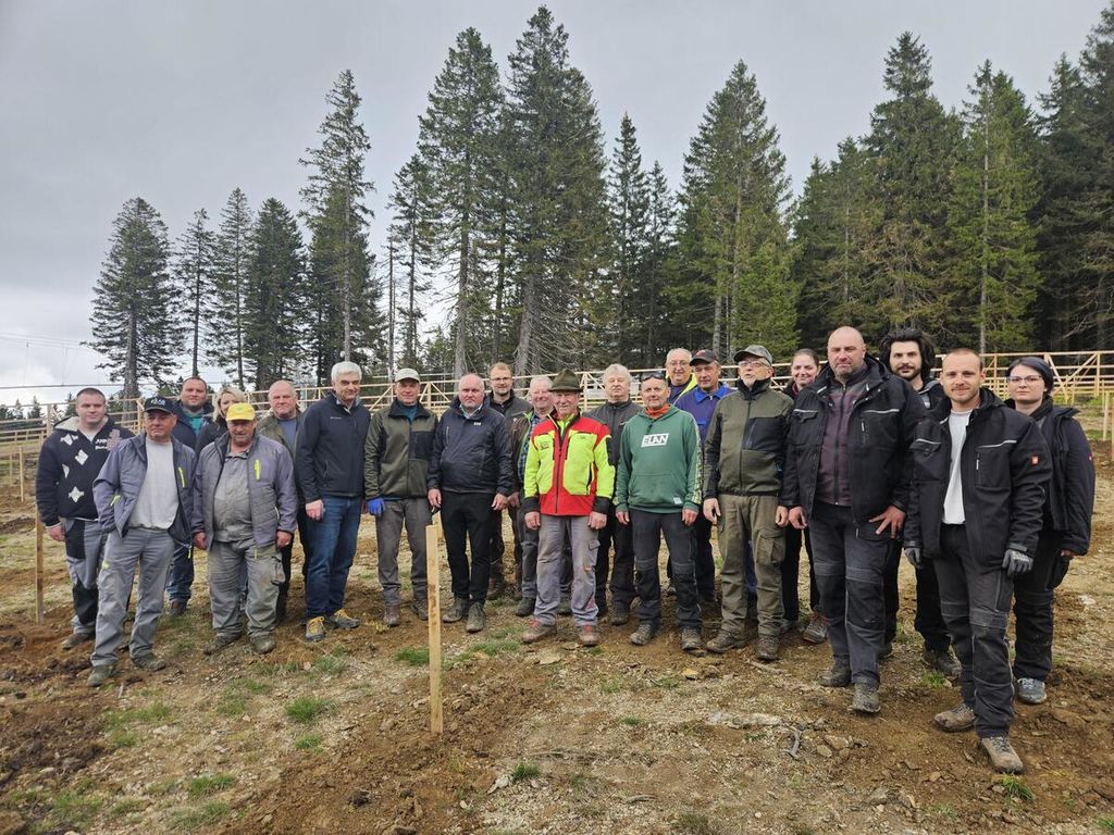 V ponedeljek 12. maja 2025 smo se predstavniki Zavoda za gozdove, KE Slov. Konjice, Unitur-ja, Občine Zreče, krajevnih skupnosti Resnik, Skomarje in Zreče, ter Režijskega obrata Občine Zreče zbrali na območju Mašin žage. Posadili smo 400 sadik dreves na območju, kjer je bil gozd v preteklih letih poškodovan zaradi vetroloma. Odločili smo se, da območje po ujmi uničenega gozda zasadimo s sadikami evropskega macesna, bora – cemprina, bukve in jerebike. Mlada drevesca smo pred objedanjem rastlinojede divjadi zaščitili z leseno ograjo, katere prednost je njen naravni videz in prijaznost do okolja. Po zaključku del so se vsem zbranim zahvalili župan Občine Zreče mag. Boris Podvršnik, vodja KE ZGS Bojan Bračič in izvršni direktor Unitur-ja Aleš Slapar. Občina Zreče pa je poskrbela, da vseh 25 udeležencev akcije niso bili ne žejne ne lačni.
