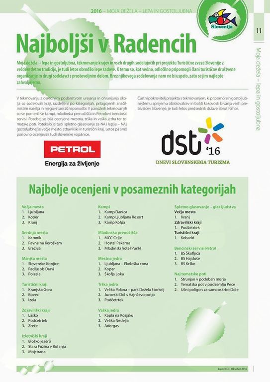 Najbolje ocenjeni v akciji Moja dežela – lepa in gostoljubna 2016 v posameznih kategorijah: