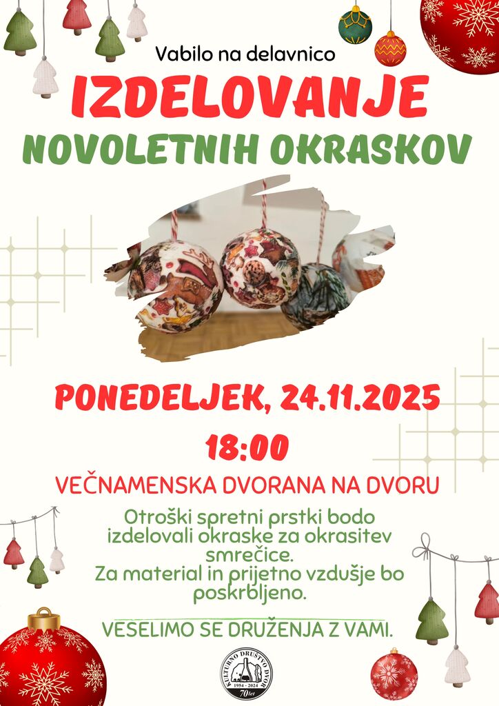 Lepo vabljeni na otroško delavnico izdelovanja novoletnih okraskov!