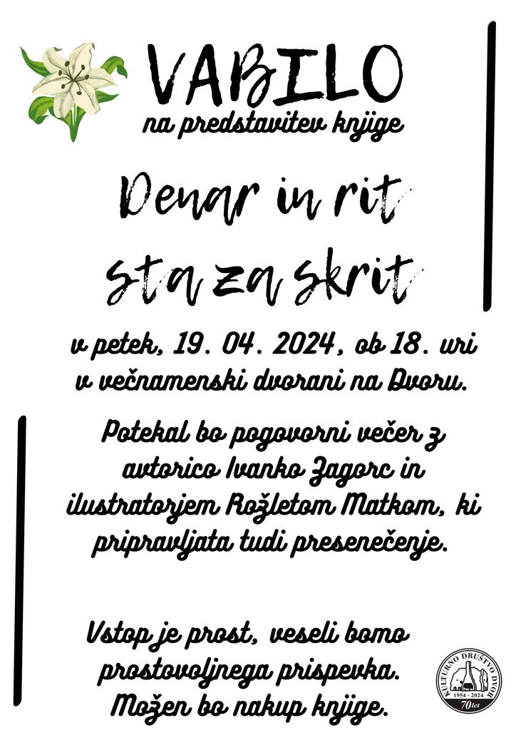 DENAR IN RIT STA ZA SKRIT; petek, 19. april 2024, ob 18. uri, v večnamenski dvorani na Dvoru.
