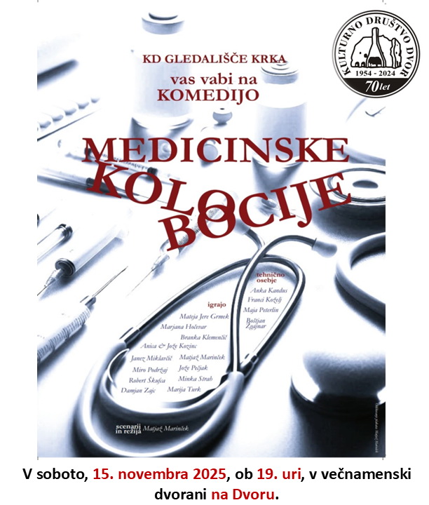MEDICINSKE KOLOBOCIJE, v soboto, 15. novembra 2015, ob 19. uri, v večnamenski dvorani na Dvoru.