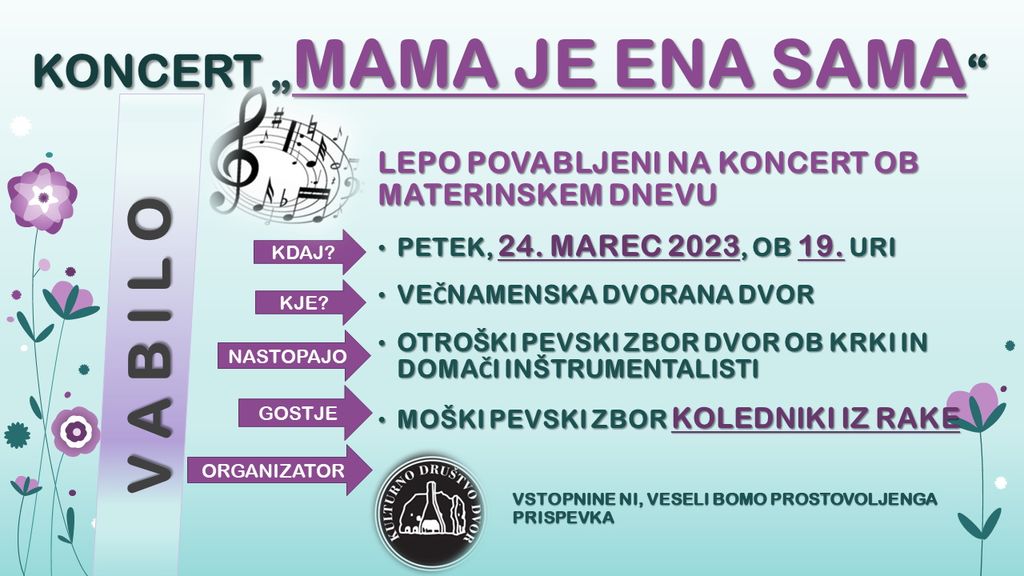 Kontaktni podatki organizatorja: Jadranka Meglen, 068 183236.