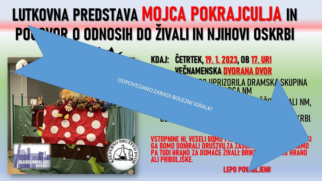 LUTKOVNA PREDSTAVA MOJCA POKRAJCULJA IN POGOVOR O ODNOSIH DO ŽIVALI IN NJIHOVI OSKRBI