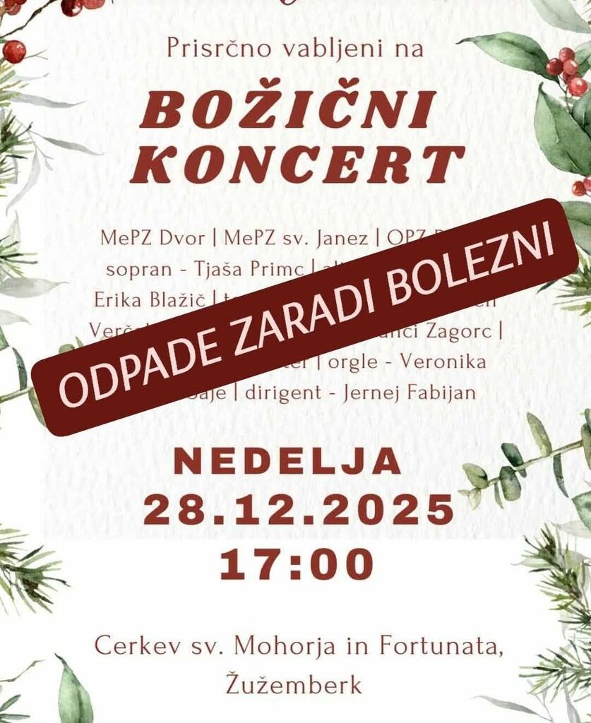 Žal vas obveščamo, da današnji koncert zaradi množične bolezni orkestra in pevcev ODPADE!