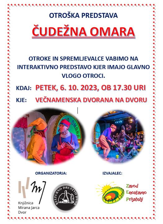Organizator: KNJIŽNICA MIRANA JARCA DVOR IN KULTURNO DRUŠTVO DVOR
