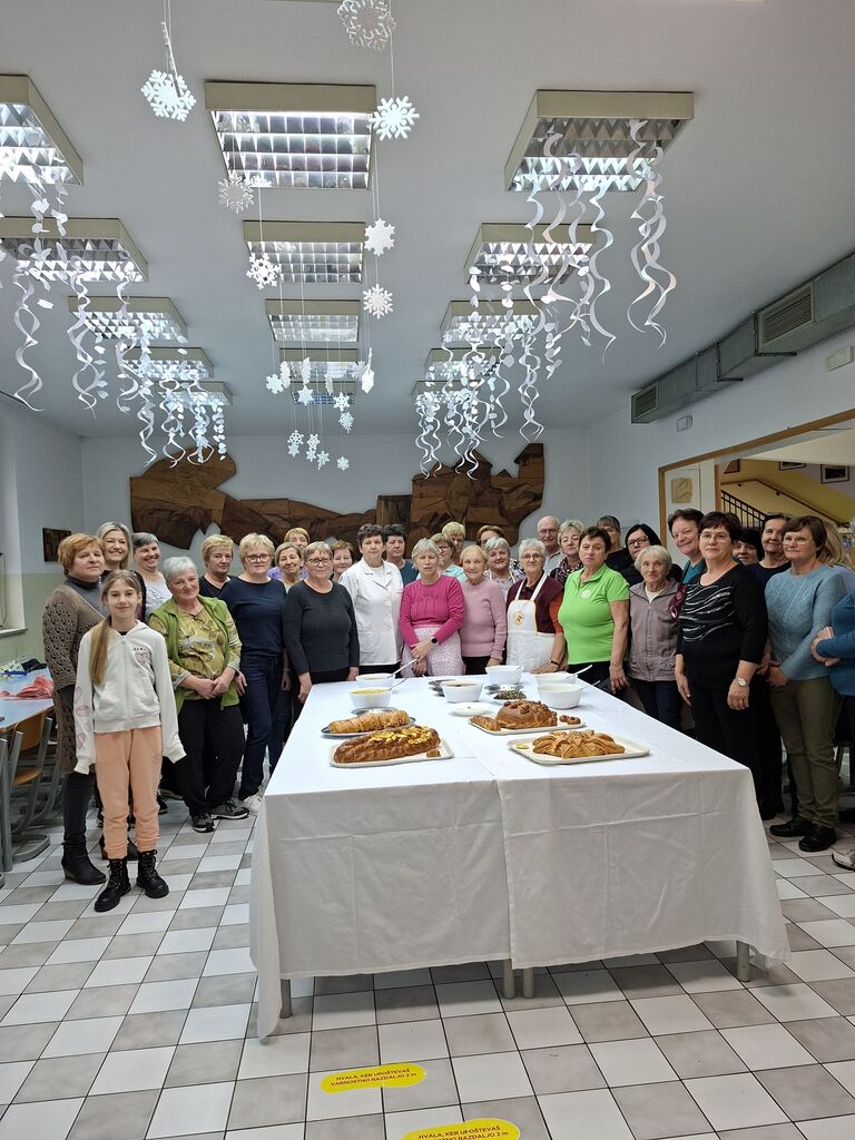 Že 30 let vsako leto v januarju organiziramo kuharski tečaj. Tudi letos so nas prijazno sprejeli v kuhinji osnovne šole Žužemberk. Mentorica, Valerija Poreber je izbrala recepte za vse okuse. Razdelili smo se v osem skupin, ki naj bi pripravile posamezne jedi. Prve tri skupine so zamesile kvašeno testo. Iz njega so izdelali sončnico, pletenico in božični kruh-poprtnik. Za glavno jed je bil goveji golaž, pečenka wellington in zelenjavni zrezek. Pokušino smo začeli z milijonsko-zdrobovo juho in česnovo juho s poširanim jajcem. Vsa hrana je bila zelo okusna. Veselimo se novih idej in okusov, da s še večjim veseljem pripravljamo vsakdanje obroke. Hvaležni smo ravnateljici, ki nam vsako leto odstopi prostor za ustvarjanje in obema zaposlenima v kuhinji, ki sta nam pomagali pri pečenju, kuhanju in pospravljanju. Na tečaju je vedno prijetno vzdušje.