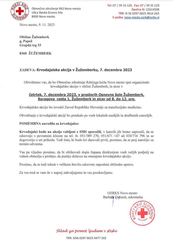 Krvodajalska akcija, 7. december 2023