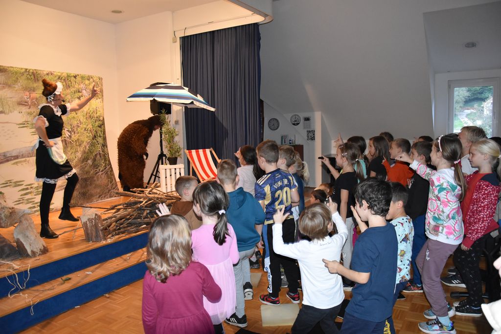 Zbrani otroci v večnamenski dvorani na Dvoru so spoznali življenje bobra. Med drugim so izvedeli, kaj najraje je, videli so, kako gradi bobrišča in izvedeli, da ga počitnice v hotelu niti slučajno ne zanimajo nit ga ne morejo navdušiti. Interaktivna predstava, med katero so se najmlajši naplesali, nekateri pa se celo za nekaj minut prelevili v bobre, je dodobra popestrila sredino popoldne in razveselila tako otroke kot tudi njihove starše.