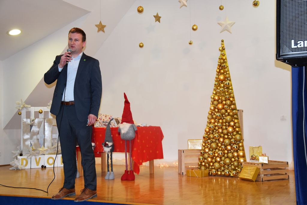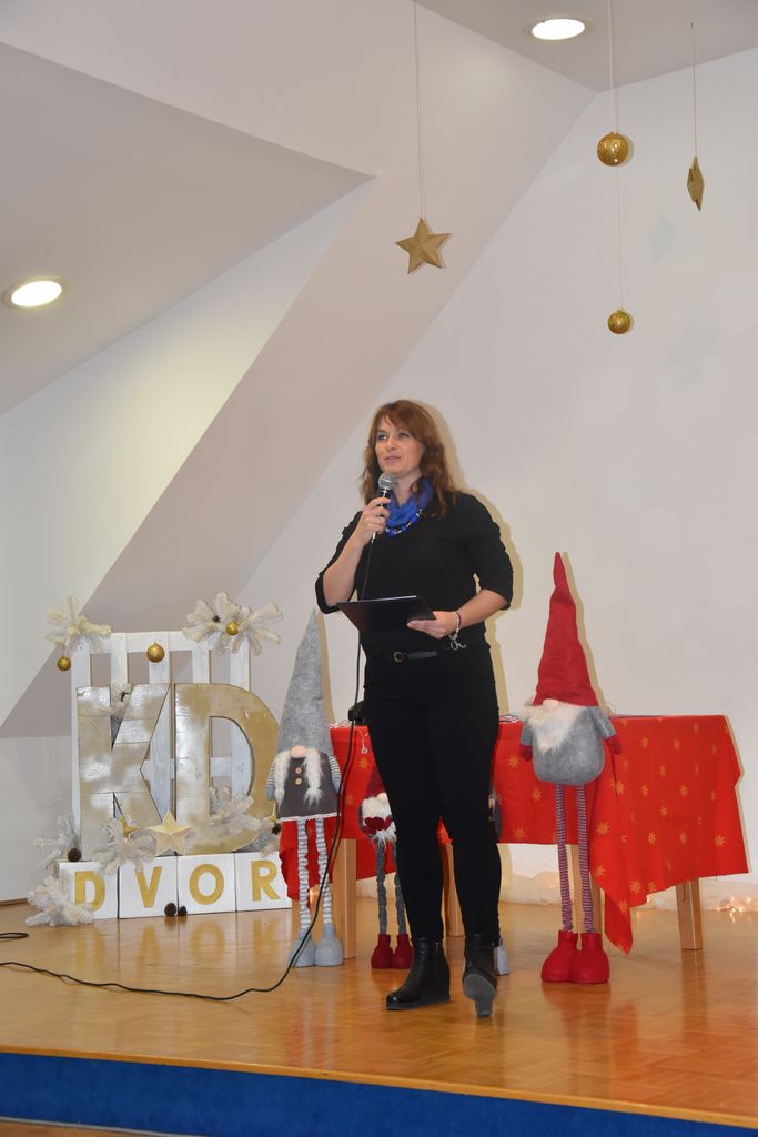 Dogodek je odprla nadarjena šolarka Živa Hren, na klarinetu. Sledili sta pesmi, ki jih je zapel Mešani pevski zbor Dvor ob Krki. Pevci so se v večeru še večkrat vrnili na oder in z glasnim in jasnim petjem v poslušalcih vzbujali prijetne občutke. Njihov zborovodja Jernej Fabijan je bil še posebno zadovoljen, saj jih je na klavirju spremljala Veronika Zagorc Saje, tako se je sam lahko prelevil v dirigenta.