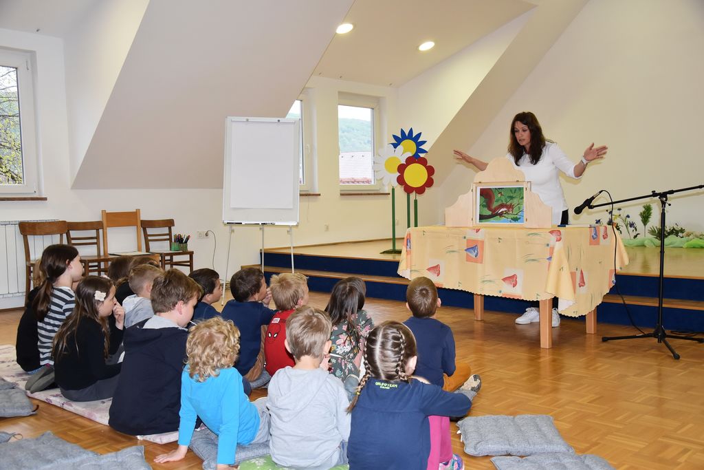 Otroke sem s kamišibaj predstavo Košatorepi veveriček Timi razveselila knjižničarka Brigita. Zgodba predstavlja primer, s katerim otrokom prikažemo pomen prijateljstva tudi med tistimi, medsebojno različnimi in drugačnimi. Pravljica je avtorsko delo knjižničarke Alenke Murgelj iz Novega mesta, prelepe ilustracije pa so delo Maje Grabrijan.