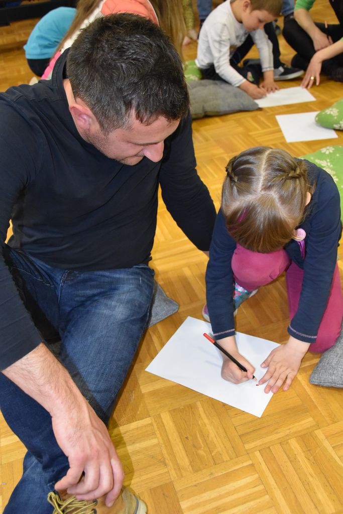 Praznih rok niso ostali niti starši. Za zaključek so lahko poslušali pravljico za odrasle, ki govori o pozabljivi belouški in s katero sem navezala na pomen družinskega branja, preživljanja prostega časa z obiskom knjižnic in ustvarjanja trajnih spominov posameznemu otroku.
