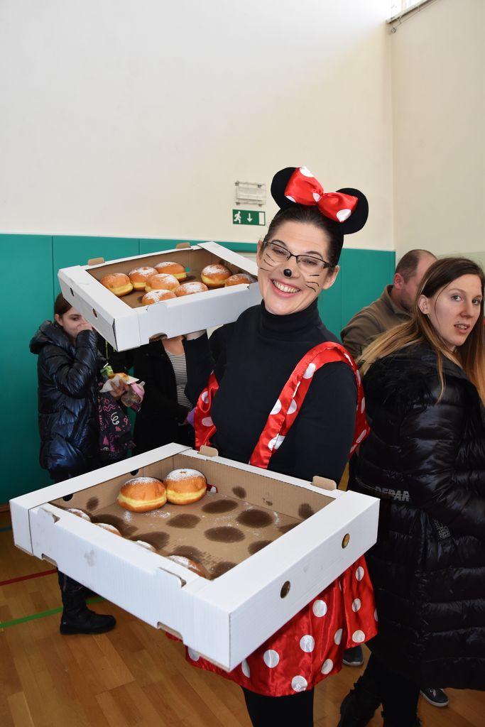 Za animacijo sta zopet poskrbela dvorni norček in princeska. Animatorja prihajata iz Zavoda Enostavno prijatelji. Za maškare sta pripravila igre, nato pa sta skupaj z njimi pela, plesala, izvajala norčije in trike. Na koncu sta jih zasula s konfeti, milnimi mehurčki, ter jih za zabavo lažno fotografirala. Smeha in veselja pa res ni manjkalo. Za lačne želodčke in žejna usta so organizatorke pustnega rajanja priskrbele slastne krofe in sokove.