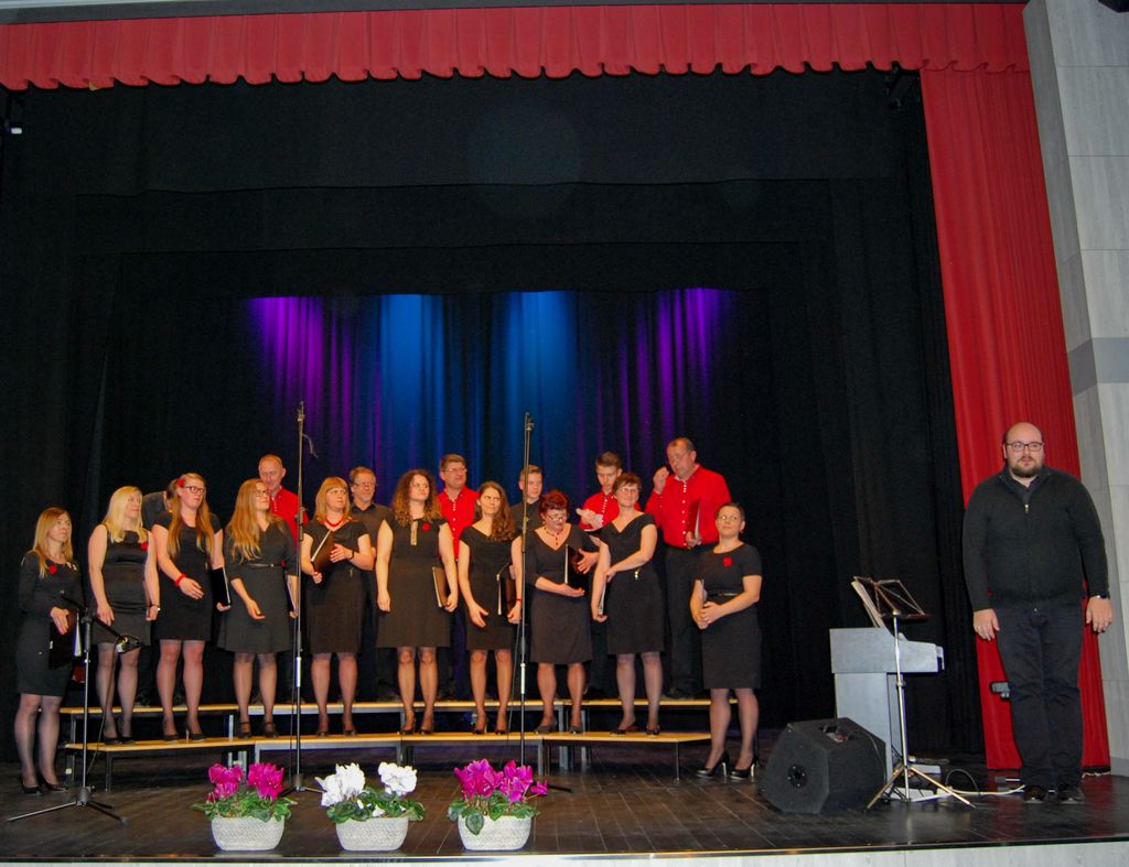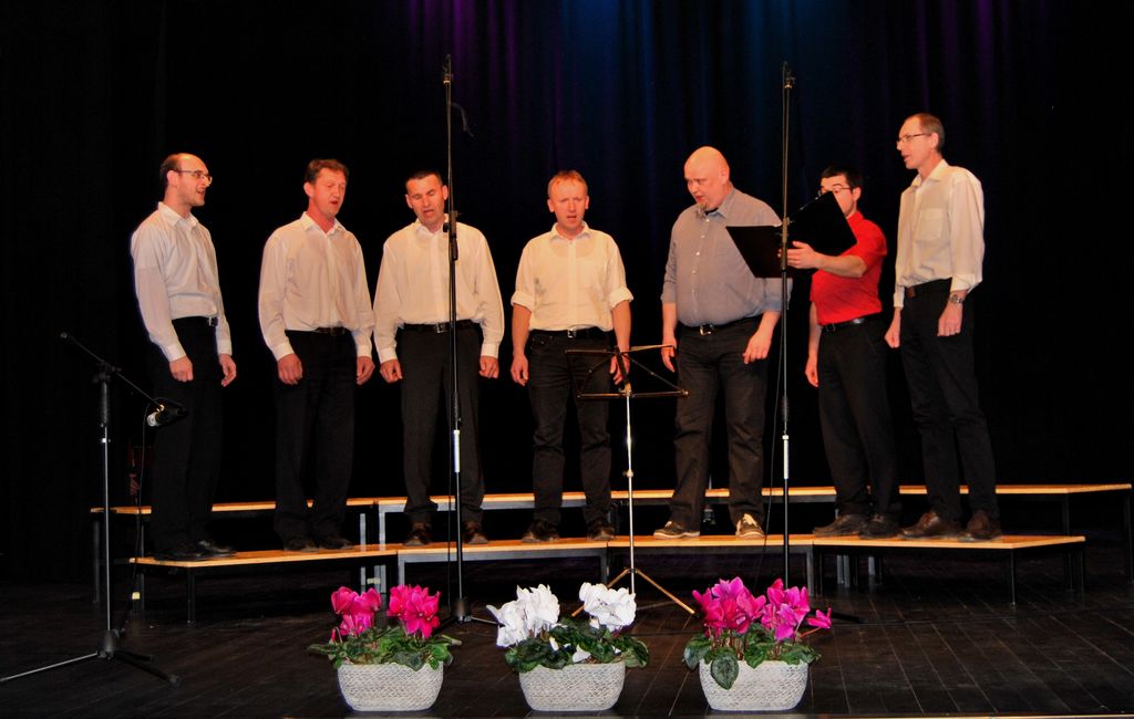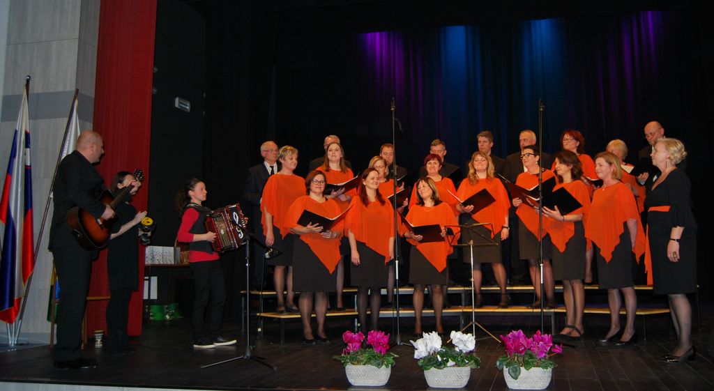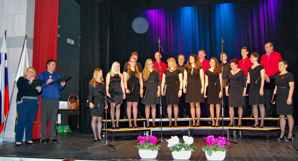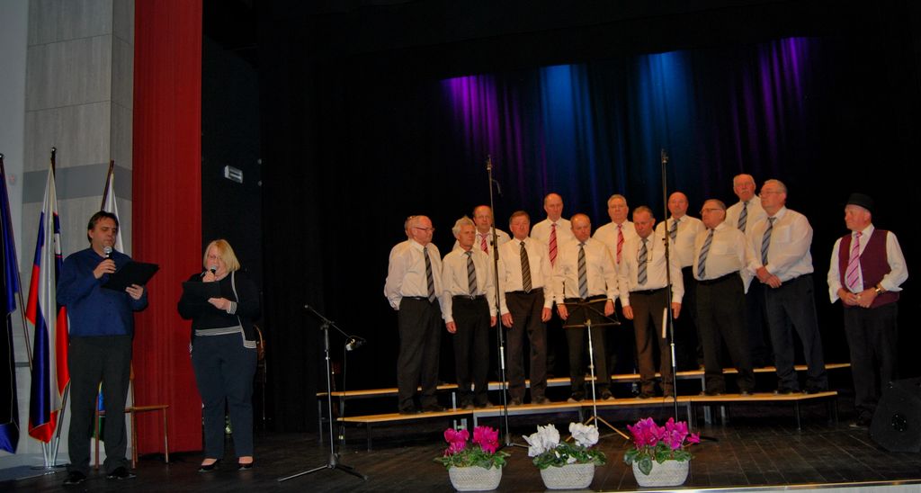 Napovedovalca Robert in Ela sta predstavila naš zbor, kot zbor, katerega umetniško poslanstvo je predsvem izvajanje raznovrstne glasbe, predvsem pa cappela del ali del ob spremljavi klavirja. Omenila je, da zboristi že dvajset let skrbijo da je zborovska glasba kar se da prisotna v suhokranjskih krajih; da se pridno udeležujejo pevskih revij, na koncertih pa dosežejo, da imajo vedno številčno publiko. Vse je res in vse drži!
