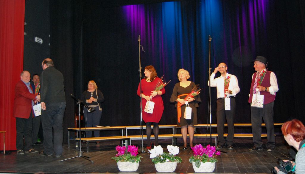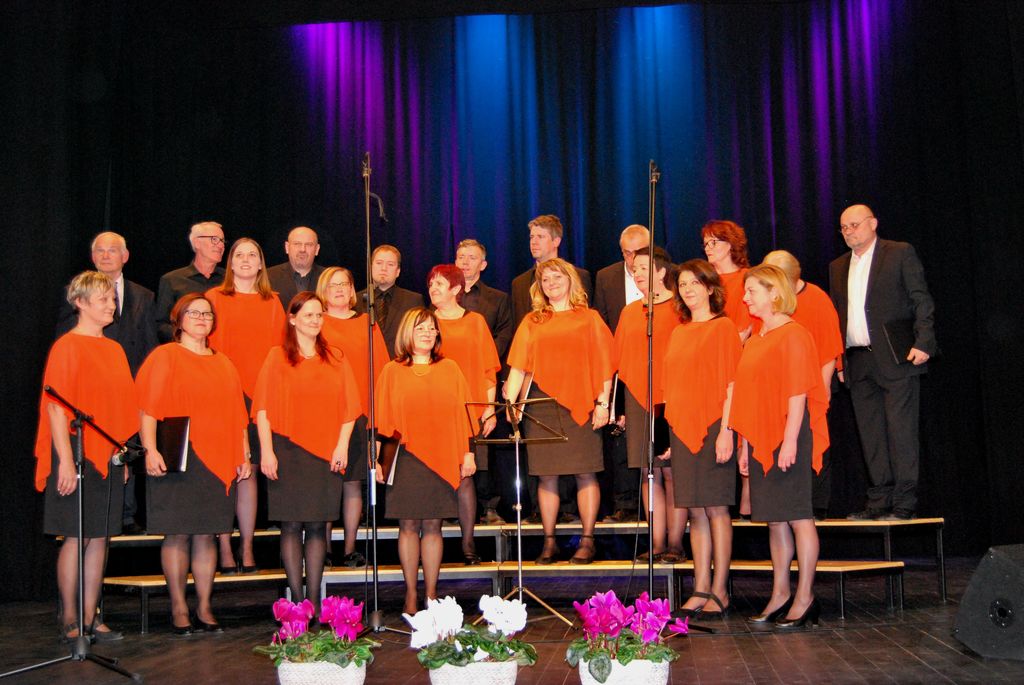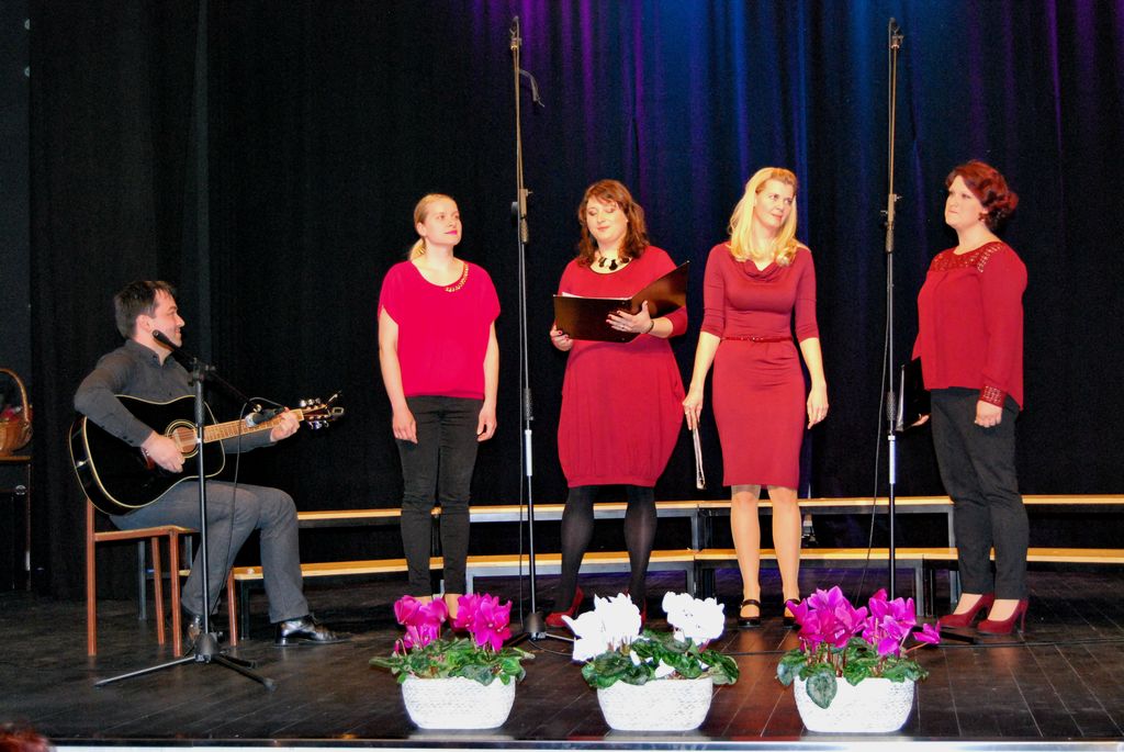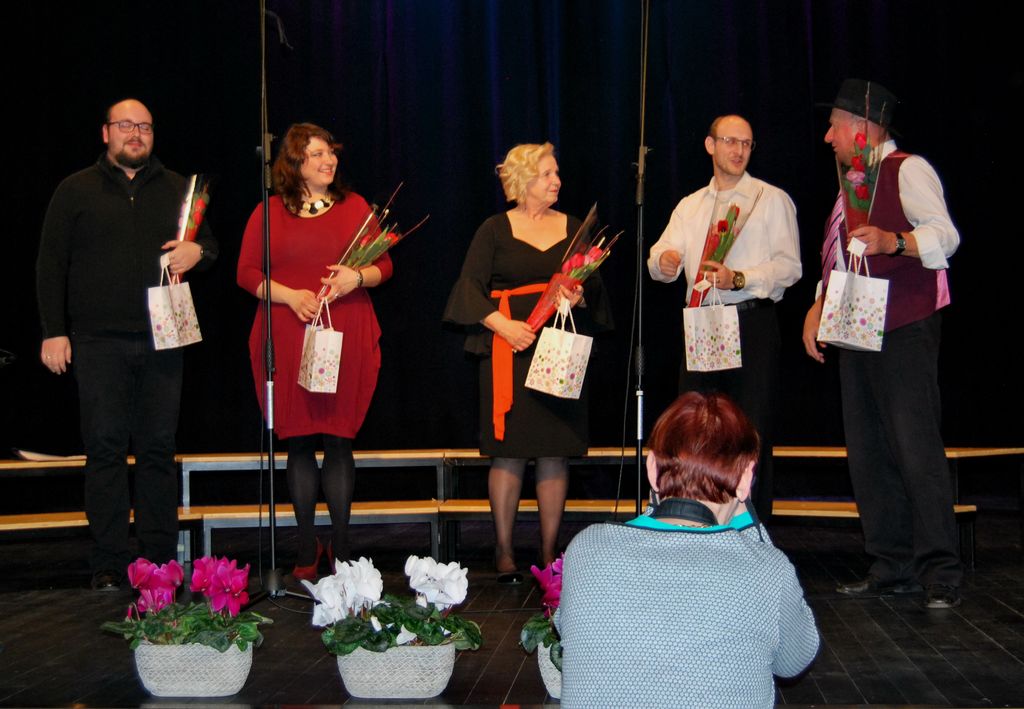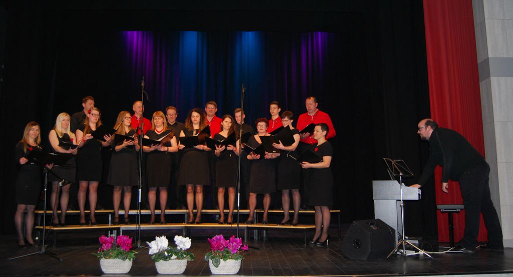 Napovedovalca Robert in Ela sta predstavila naš zbor, kot zbor, katerega umetniško poslanstvo je predsvem izvajanje raznovrstne glasbe, predvsem pa cappela del ali del ob spremljavi klavirja. Omenila je, da zboristi že dvajset let skrbijo da je zborovska glasba kar se da prisotna v suhokranjskih krajih; da se pridno udeležujejo pevskih revij, na koncertih pa dosežejo, da imajo vedno številčno publiko. Vse je res in vse drži!