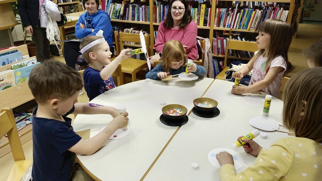 Na pravljični urici v knjižnici Dvor so otroci z zanimanjem prisluhnili ganljivi zgodbi o mestu Direndaj, kjer so nenadoma izginile vse barve. Z njimi je izginila tudi toplina, veselje in živahnost vsakdana. Zdelo se je, da za mesto ni več upanja, dokler se ni pojavila nova pot – pot prijaznosti, sočutja in medsebojnega spoštovanja, ki je postopoma vrnila barve in življenje.