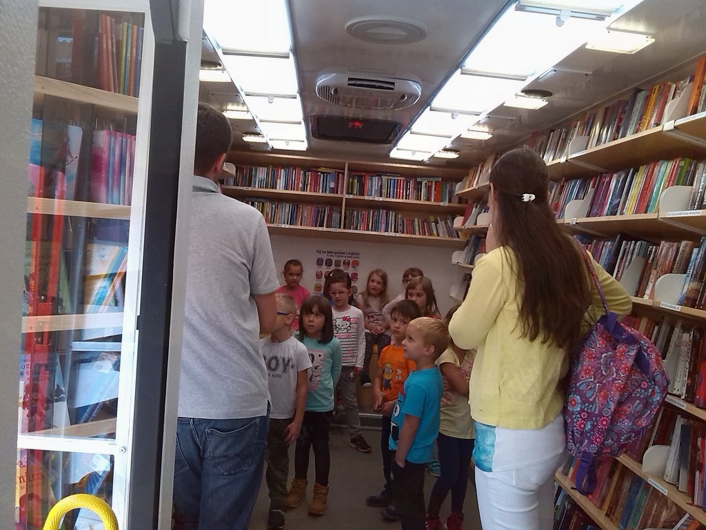 V sredo, 21. septembra sta se knjižničar Luka in šofer Vinko z novim bibliobusom pripeljala pred Osnovno šolo na Dvoru. Vsakemu razredu posebej je Luka na kratko predstavil »knjižnico na kolesih«, otroci pa so si z zanimanjem ogledali notranjost bibliobusa. Presenetil jih je podatek, da prevažata naokoli več kot 7.000 enot gradiva.