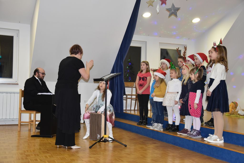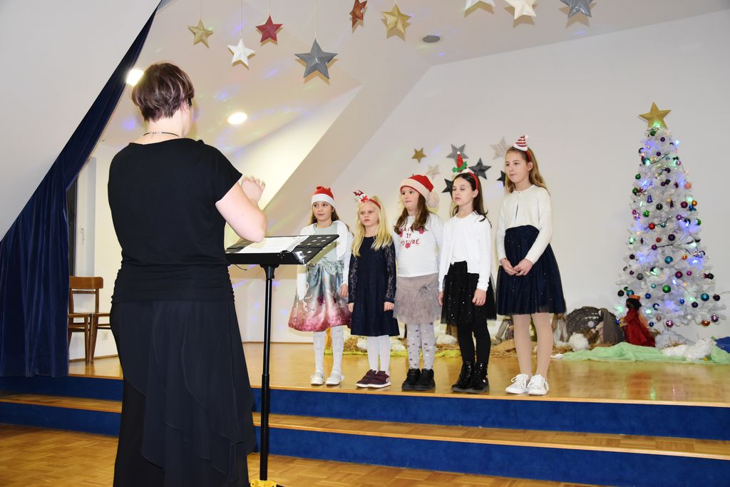 Predsednica Kulturnega drustva Dvor, Vesna Može, je v uvodu pozdravila obiskovalce in se zahvalila vsem, ki so pomagali pri krašenju dvorane in pripravi dogodka. Izpostavila je tudi kar dvojne jaslice, ki so delo članic Anite Primc in Anite Kuhlj. Občinski župan, Jože Papež, je z veseljem pozdravil in otvoril prireditev, nato pa so zadoneli glasovi mladih grl. Otroci so navdušili z dvema slovenskima pesmima ter tradicionalno luksemburško. Zborovodja Tjaša Primc je dirigirala ne le zboru, temveč tudi spremljavi na bobnu. Na klavirju pa je igral Jernej Fabijan. Starejši otroci so strumno odpeli dve božični pesmi, od tega eno kar v latinščini. Mešani pevski zbor je obiskovalce zazibal v zasanjane novoletne želje, vse do havajskih pozdravov in nazaj v prošnje za sneg. Prav posebna poslastica sta bili operni ariji Tjaše Primc, ki nas je očarala z arijo iz opere G. Verdija Ples v maskah, nato pa s klasično O, holy night oz. O, sveta noč.