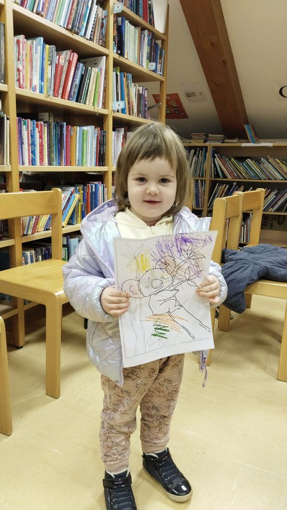 V knjižnici Dvor nadaljujemo naše pravljično potepanje s knjižničarko Doris. Tokrat so otroci prisluhnili duhoviti zgodbi o debeli pekovki Margot in slikarju Frideriku Žemlji ter se ob tem pošteno nasmejali, kajti Margot ima nenavadno skrivnost, da včasih zleze v krof…Sledila je še zgodba o koali, ki si je želela, da bi stvari ostale točno take, kot so. Ko je nekega dne prišlo do sprememb, pa je ugotovila, da je življenje lahko drugačno in čudovito. Sledile so igre, nato so otroci pobarvali koalo Kevina. Z novo pravljično dogodivščino se naše pravljično potepanje nadaljuje decembra.