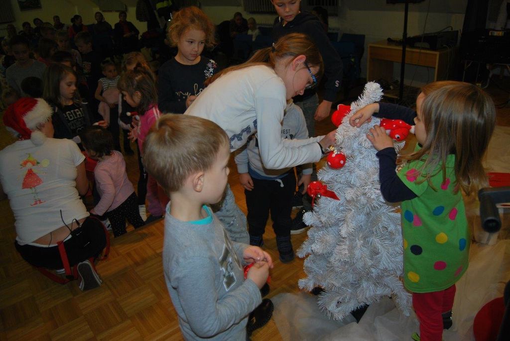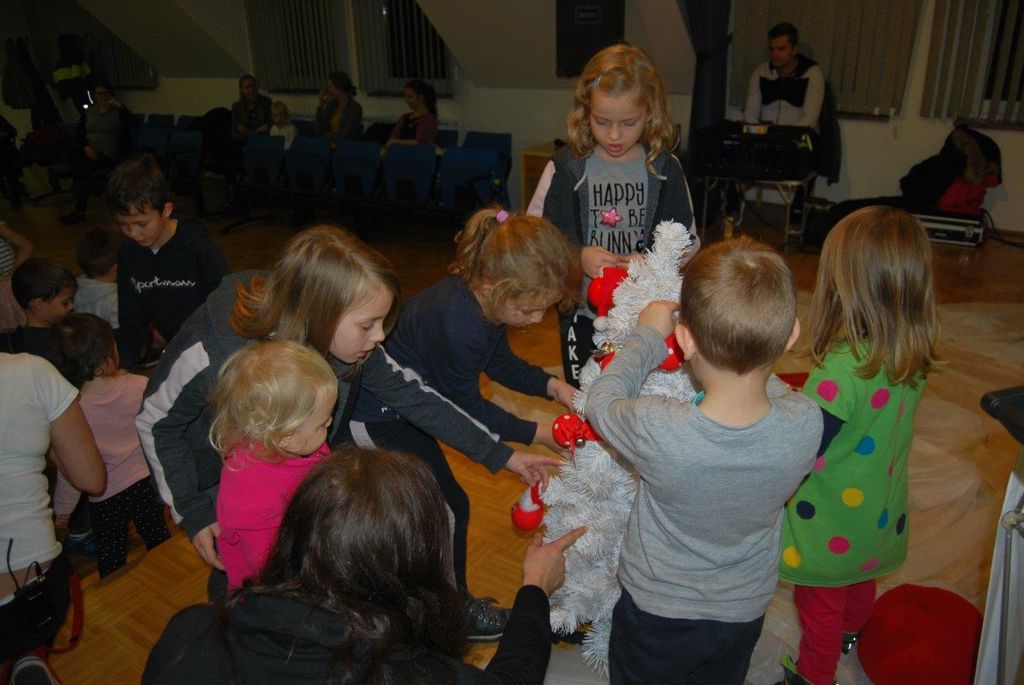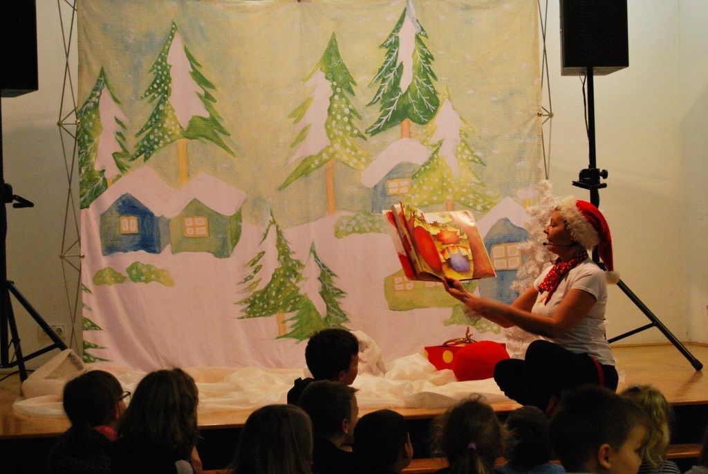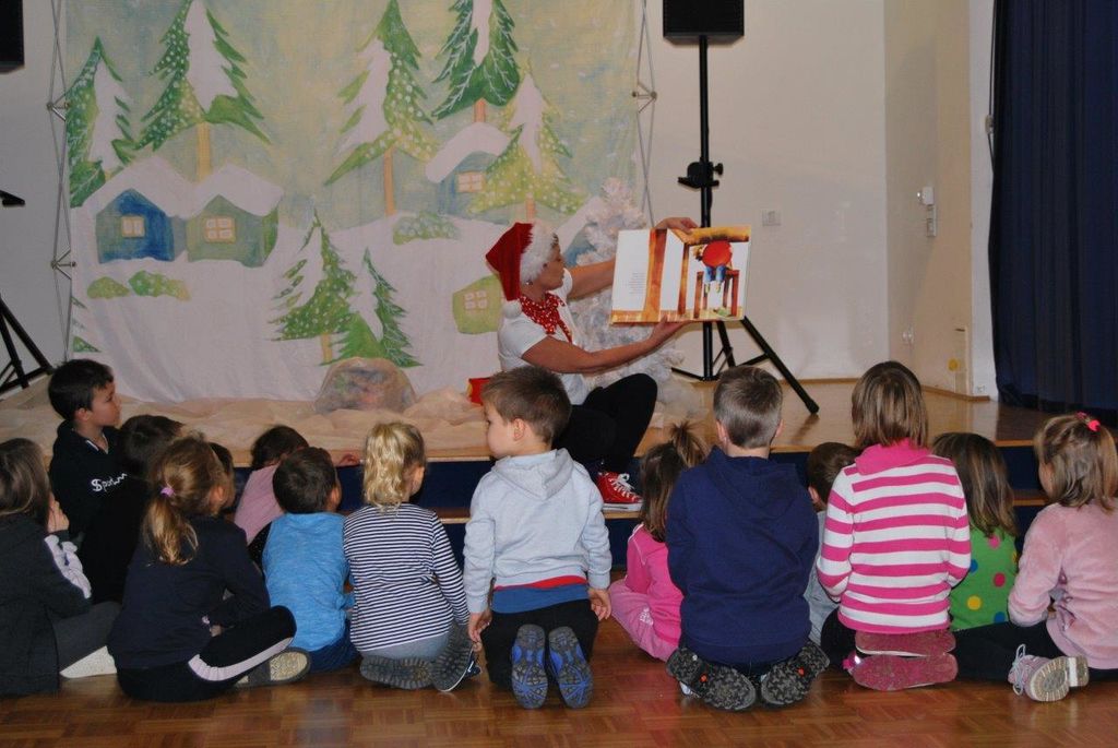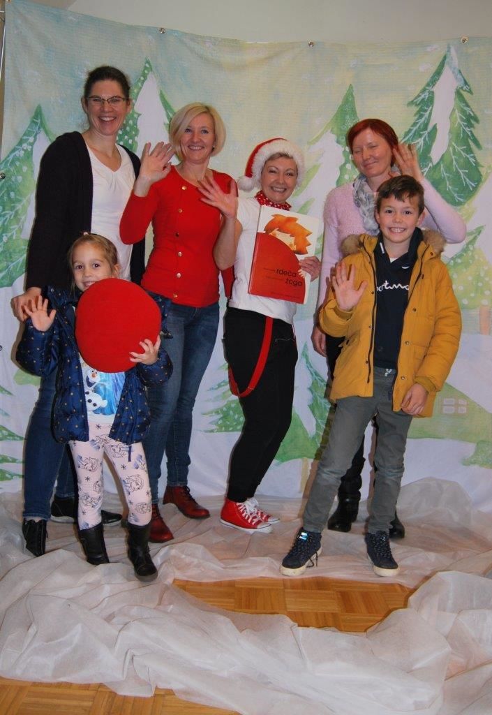 Da bi povezali Ta veseli dan kulture in pred kratkim obeležen Dan splošnih knjižnic, ki ga že od leta 2002 slovenske splošne knjižnice obeležujemo vsako leto, 20. novembra, je Maja v svojo nadvse igrivo in hudomušno predstavo vključila tudi knjigo Rdeča žoga. Prebrala je pravljico, ki govori o tem, da ima vsak otrok  žogo ali pa si jo želi. Mnogim žoga postane prijateljica... Lizina žoga pripoveduje o tem, kako se igra z Lizo. Liza in vsi njeni prijatelji jo občudujejo, ker je tako velika in tako zelo rdeča. Maja pa je prinesla tudi svojo rdečo žogo, s katero se je žogala z otroci ob spremljavi pesmi Rdeča žoga, katero so zapeli tudi otroci. V igro, petje in ples  ob spremljavi hudomušnih in igrivih pesmic,  je animatorka vključila tako otroke kot tudi starše. Ker pa je že nastopil veseli december, ni šlo brez okrasitve novoletne jelke. Otroci so z rdečimi bunkicami okrasili drevešček in na koncu občudovali svojo umetnino.