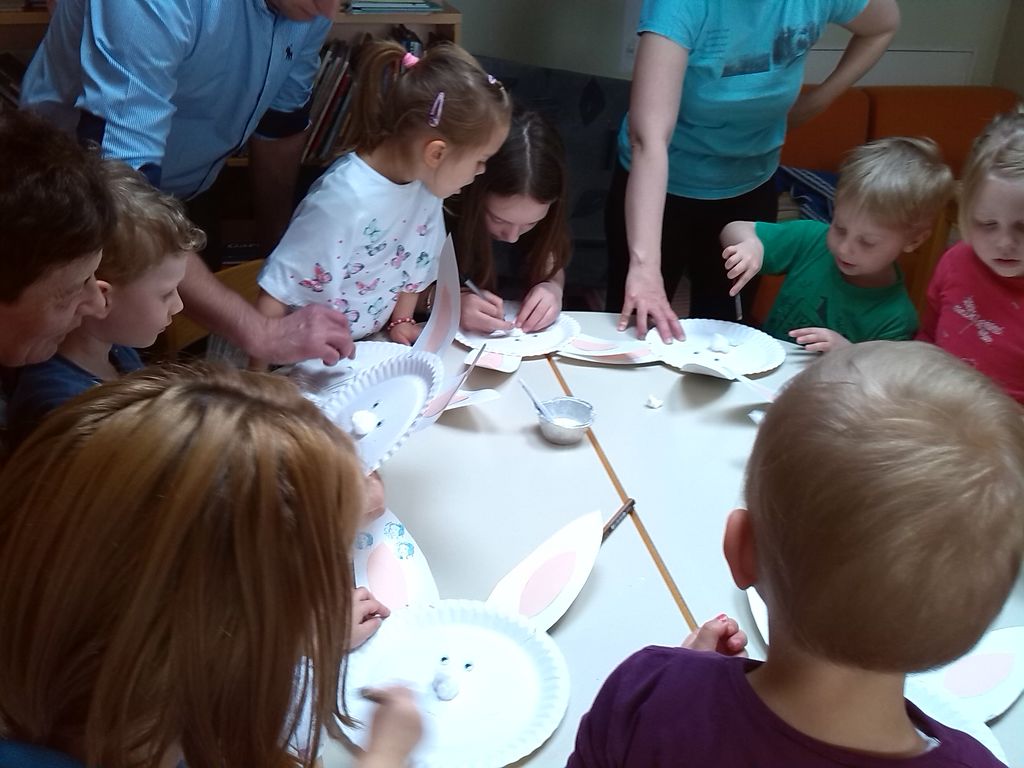 In že je tu nova pravljična urica, ki smo jo v Knjižnici Dvor velikonočno obarvali, saj smo v ustvarjalni delavnici izdelovali velikonočne zajčke iz papirnatih krožnikov. Kot zanimivost pa še ta podatek, da V Sloveniji zajčka poznamo bolj kot le simbol velikonočnih praznikov, medtem ko ima v ZDA še pomembnejšo vlogo in je tradicija skrivanja velikonočnih jajčk bolj izrazita. Velikonočni zajček naj bi v noči pred veliko nočjo prinesel pirhe, sladkarije in (v modernem času) tudi igračke, ter jih pustil v košarici na dogovorjenem mestu, ali pa skril nekje v hiši ali na vrtu, da jih otroci zjutraj poiščejo.