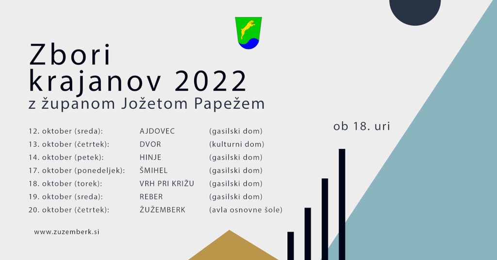Zbori krajanov z županom Jožetom Papežem bodo od 12. do 20. oktobra ob 18. uri potekali po naslednjem razporedu: