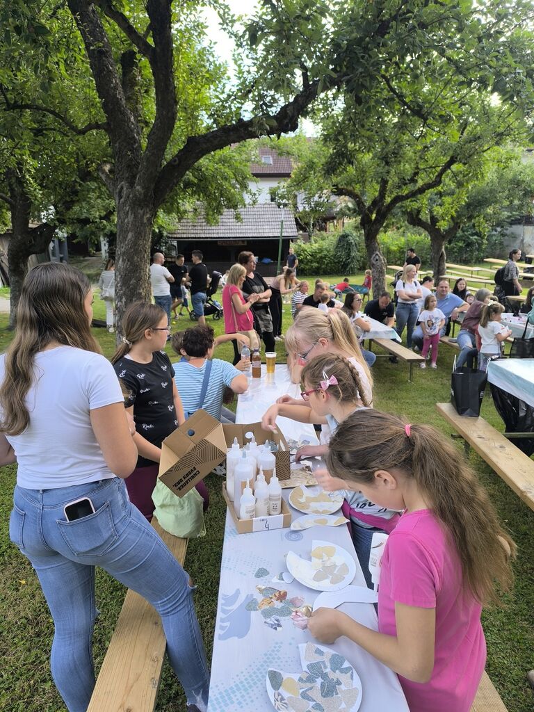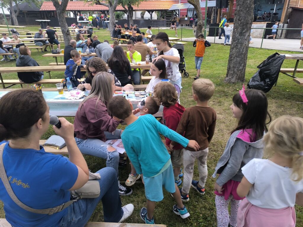 Večer se je začel z animacijami za najmlajše. Člani Kulturnega društva Dvor so poskrbeli za zabavne igre, kot so labirint, hokej steza, metanje žogic v ciljne luknjice, tri v vrsto, metanje žogic v konzerve, pobarvanke ter ustvarjalne delavnice, kjer so otroci izdelovali ribice z luskami in hobotnice. Kotiček za poslikavo obraza, izdelovanje kitk ter barvanje pramenov las je bil izredno priljubljen in poln smeha.