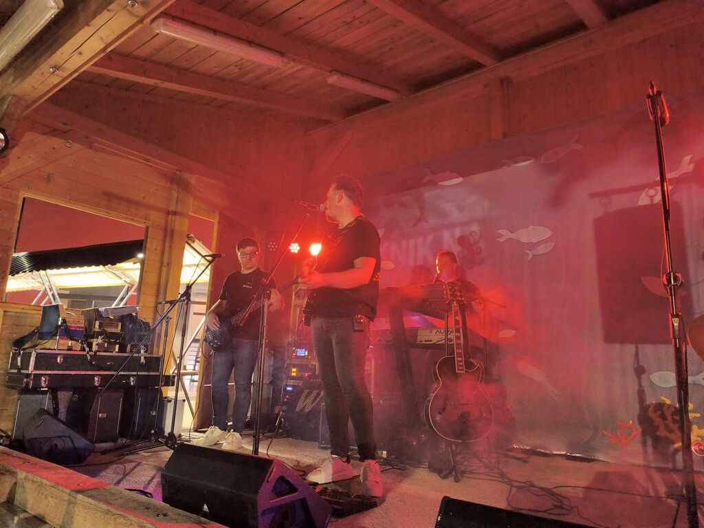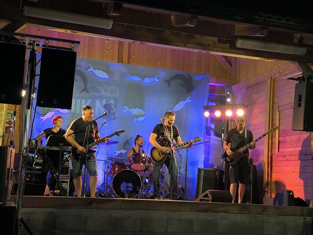 Ob devetih zvečer pa so na oder stopili člani rock zasedbe 5. Dimenzija, ki so po dveh desetletjih ponovno združili moči. Simon, Klemen, Mohar, Matjaž in Tjaša so z oživitvijo svojih instrumentov in surovo energijo navdušili občinstvo. Pesmi skupin, kot so Niet, Billy Idol, AC/DC in Chained Pistons, so preplavile dvorišče, obiskovalci pa so zaplesali ob ritmih rocka. Poseben trenutek je bil tudi, ko se je k zasedbi pridružila Tjaša Primc, direktorica Zavoda Žužemberk, ki je ob klaviaturah dodala svoj glas in svojo energijo.