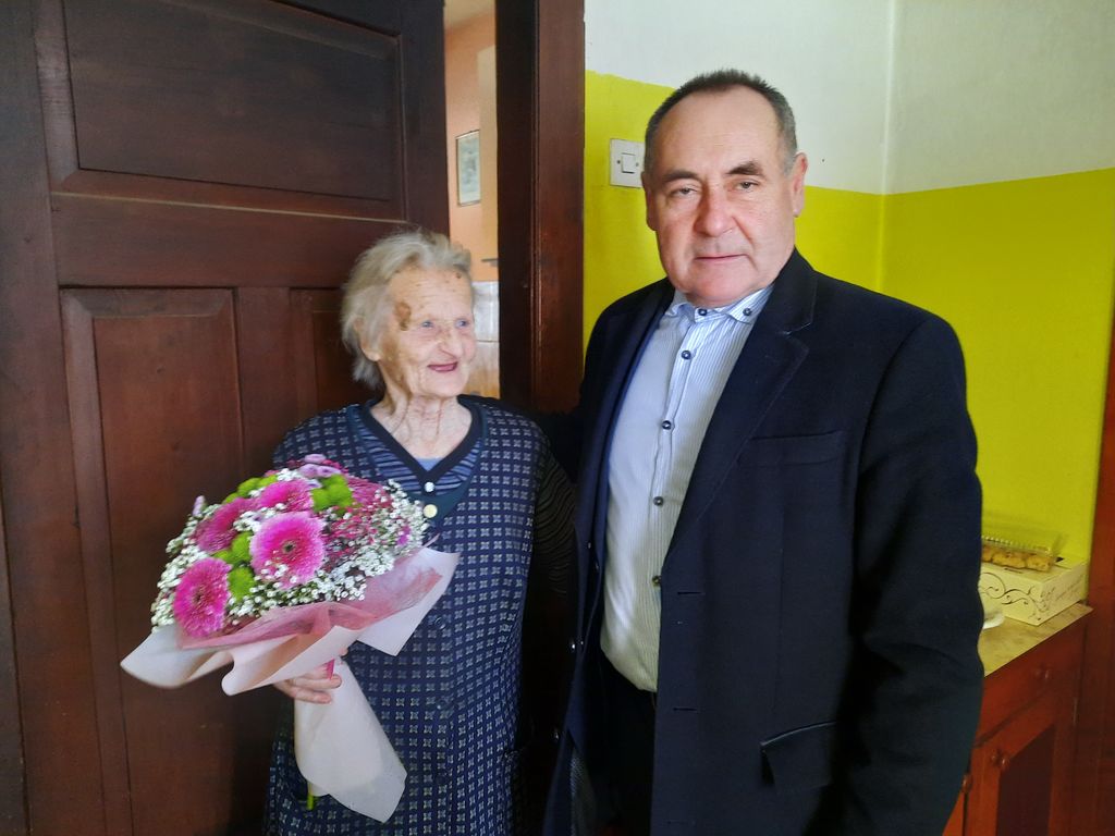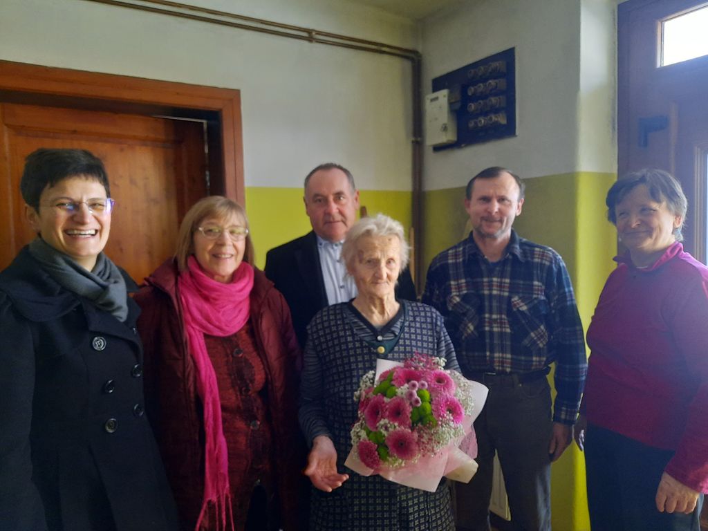 jubileju, 90 let; smo jo obiskali predstavniki KORK Žužemberk Olga Drap in župan