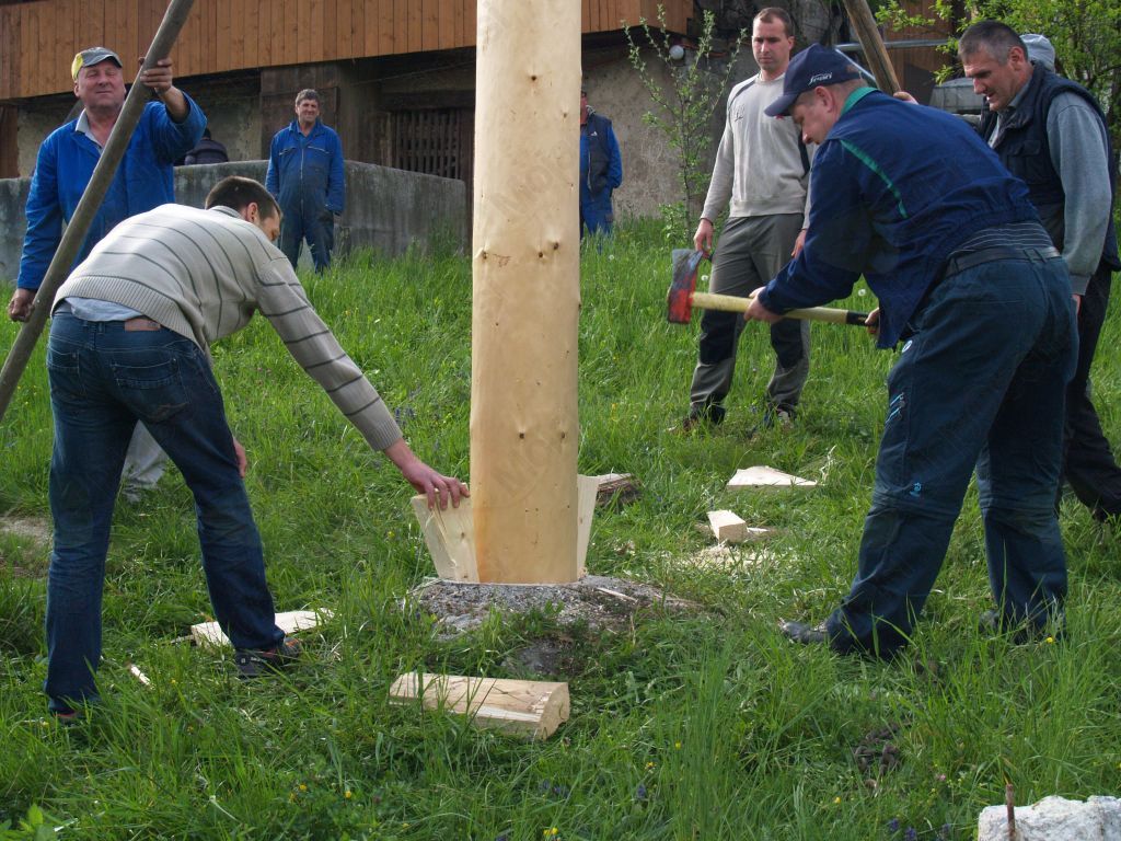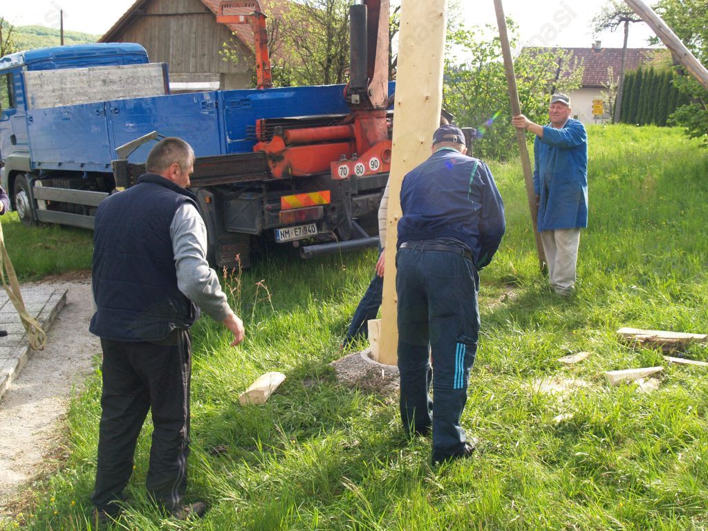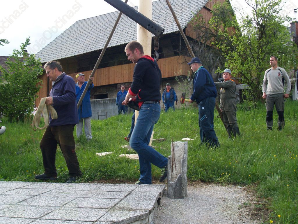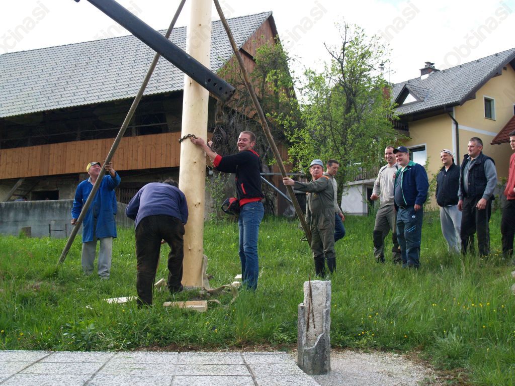 Vaščani Lašč ter dveh zaselkov Klopce in Žvinglovc pri Dvoru , ki tradicijo ohranjajo že od nekdaj, so za tovrstni običaj res dobro izurjeni. Vrsto let so mlaj postavljali na roke, z leseni drogovi, verigami in močnimi rokami. Zadnja leta pa jim pri tem zahtevnem delu pomaga mehanizacija. Po uspešno opravljenem delu, ko je mlaj varno, v že prej zabetonirani odprtini, ga zagozdijo z močnejšimi lesenimi zagozdami. Vaščani so za to priložnost pripeljali iz bližnjega gozda kar 30 m visoko in lepo smreko. Dogodek je na sredo vasi, nad znano gostilno Rojc privabil celo vas. Vaščani so se ob tem sproščeno pogovarjali, zvečer pa jih čaka še kresovanje, ki bo v vinski gorici Stara gora in na posestvu pri Rojčevih. S.Mirtič