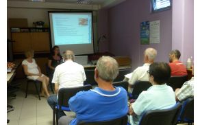 Alenka Virant nam je predstavila »Družabništvo za osebe z demenco na domu«. Družabništvo ne vključuje osebne nege, prehranjevanja, dajanja zdravil, ampak gre za druženje 1-2krat na teden po 1-2 uri. V tem času svojcem omogočimo, da se spočijejo, porabijo čas za opravke in da se razbremenijo. Pogovor je potekal med udeleženci zelo sproščeno. Pogovarjali so se, kako živeti z demenco in v kakšnem okolju. Bolniki z demenco bi morali živeti v prijaznem in ljubečem okolju. Izjemnega pomena so svojci, ki skrbijo za bolnika. Bolniki z demenco potrebujejo veliko pozornosti, neprestano spremljanje in pogosto tudi stalen nadzor. Vse to pa pri svojcih lahko povzroči izgorevanje in potrebujejo tudi razbremenitev. Potrebovali bi prostovoljce, ki bi se usposobili za delo z bolnikom z demenco in bi vsaj za nekaj ur na teden tako lahko razbremenili svojce.