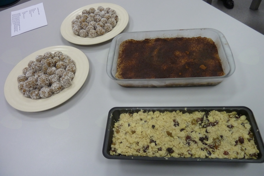 Udeleženci Medgeneracijskega središča so se tokrat zbrali na kuharski delavnici s Suzano Plut, ki nam je predstavila pripravo sladic brez glutena, mleka in bele moke. Suzana Plut je najprej na kratko predstavila nekatere sestavine, ki jih v naši kuhinji redkeje uporabljamo (fina rožičeva moka, čičerikina moka, javorov sirup, kokosova mast, melasa ipd.) ter njihove hranilne lastnosti. Nato smo se lotili kuhanja in pripravili naslednje jedi: sladek kokosov namaz z rožičevo moko, bananin kruh, bananine kocke z arašidi, prosene kroglice s suhimi figami in halvo.